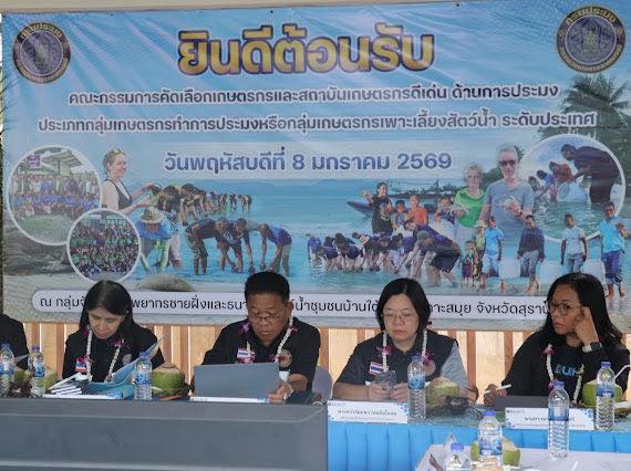 คณะทำงานคัดเลือกสถาบันเกษตรกรดีเด่น ประเภทกลุ่มเกษตรกรทำการประมง หรือกลุ่มเกษตรกรเพาะเลี้ยงสัตว์น้ำ ระดับประเทศ ประจำปี 2569 ลงพื้นที่จังหวัดสุราษฎร์ธานี ระหว่างวันที่ 7–8 มกราคม 2569 เพื่อพิจารณาคัดเลือกสถาบันเกษตรกรดีเด่น และติดตามผลการดำเนินงานของกลุ่มประมงในพื้นที่อำเภอเกาะสมุย จังหวัดสุราษฎร์ธานี