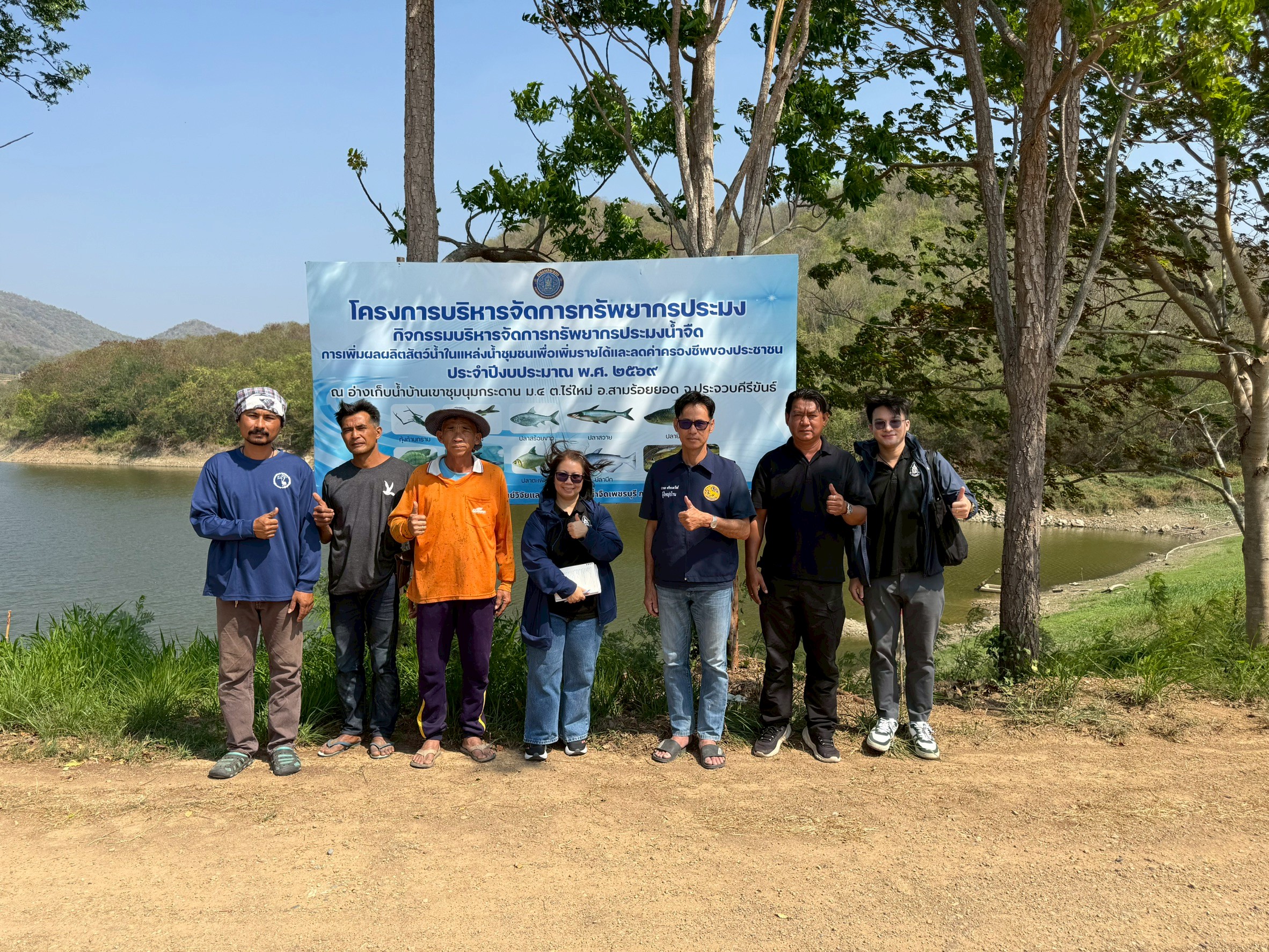 - ลงพื้นที่สำรวจแหล่งน้ำอ่างเก็บน้ำบ้านเขาชุมนุมกระดาน หมู่ที่ 4 หมู่บ้านหนองจิก ตำบลไร่ใหม่ อำเภอสามร้อยยอด จังหวัดประจวบคีรีขันธ์