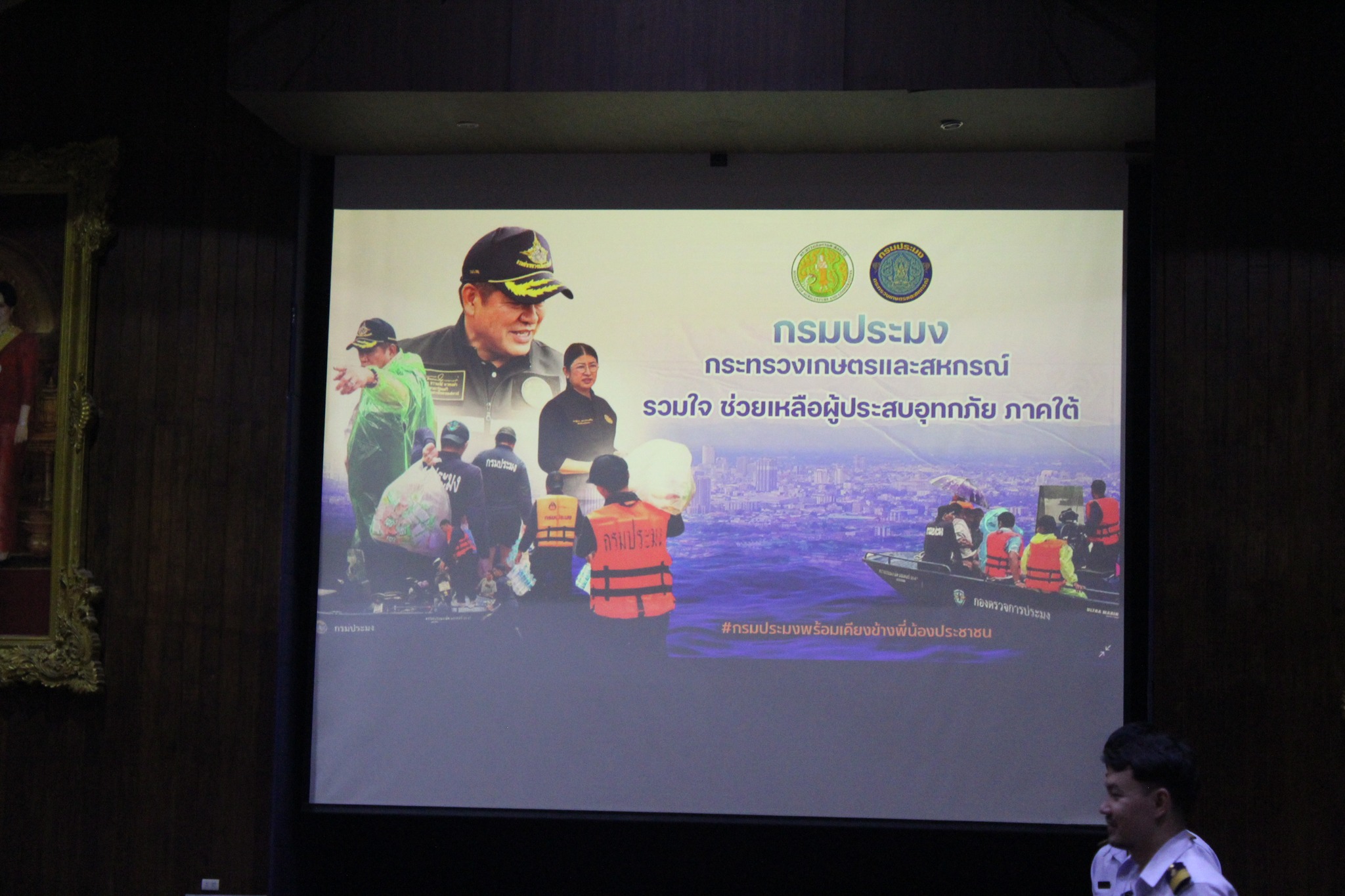 นายซุลกีฟลี ลติฟีปุตรา ผู้อำนวยการกองตรวจสอบเรือประมง สินค้าสัตว์น้ำ และปัจจัยการผลิต กรป. กรมประมง นำทีมครอบครัว กรป. ร่วมบรรจุข้าวสาร อาหารแห้ง และของใช้ที่จำเป็น เพื่อนำไปช่วยเหลือและบรรเทาความเดือดร้อน ให้กับเกษตรกรและประชาชนที่ประสบอุทกภัย ในเขตจังหวัดภาคใต้ ณ ห้องประชุมอานนท์ กรมประมง เมื่อวันจันทร์ที่ 24 พฤศจิกายน 2568 เวลา 14.00 น. “กรมประมง กระทรวงเกษตรและสหกรณ์ ร่วมใจ ช่วยเหลือ ผู้ประสบอุทกภัย ภาคใต้” โดยนางฐิติพร หลาวประเสริฐ อธิบดีกรมประมง มอบหมายให้นายมานพ หนูสอน รองอธิบดีกรมประมง เป็นประธาน คณะผู้บริหาร ข้าราชการ และเจ้าหน้าที่กรมประมง ร่วมกิจกรรม..