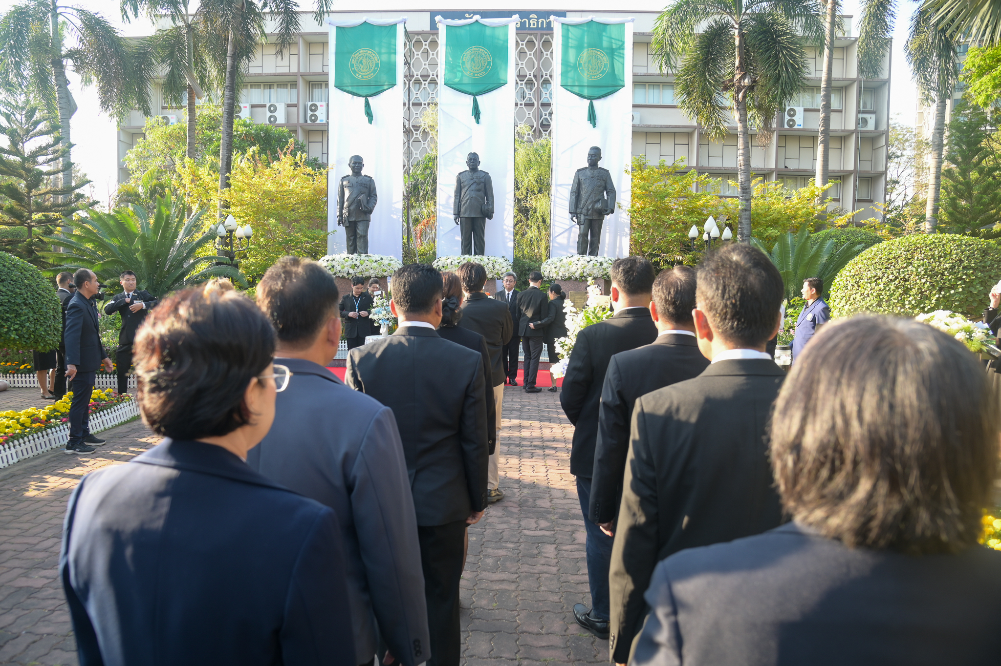 วันจันทร์ที่ 2 กุมภาพันธ์ 2569 เวลา 07.00 น. นายจิติวัฒน์ เหล็งบำรุง หัวหน้ากลุ่มวิเคราะห์และพัฒนาระบบการตรวจสอบเรือประมง สินค้าสัตว์น้ำ ปัจจัยการผลิต และนายภูริธัช วัชรสินธุ์ หัวหน้ากลุ่มตรวจสอบเรือประมง เข้าร่วมพิธีวางแจกันดอกไม้และพิธีทำบุญตักบาตรพระสงฆ์ จำนวน 20 รูป เนื่องในวันคล้ายวันสถาปนามหาวิทยาลัยเกษตรศาสตร์ ครบรอบ 83 ปี เพื่อแสดงความยินดีและน้อมรำลึกถึงคุณูปการของอดีตสามบูรพาจารย์ผู้ก่อตั้งมหาวิทยาลัย ณ อนุสาวรีย์สามบูรพาจารย์ มหาวิทยาลัยเกษตรศาสตร์ บางเขน