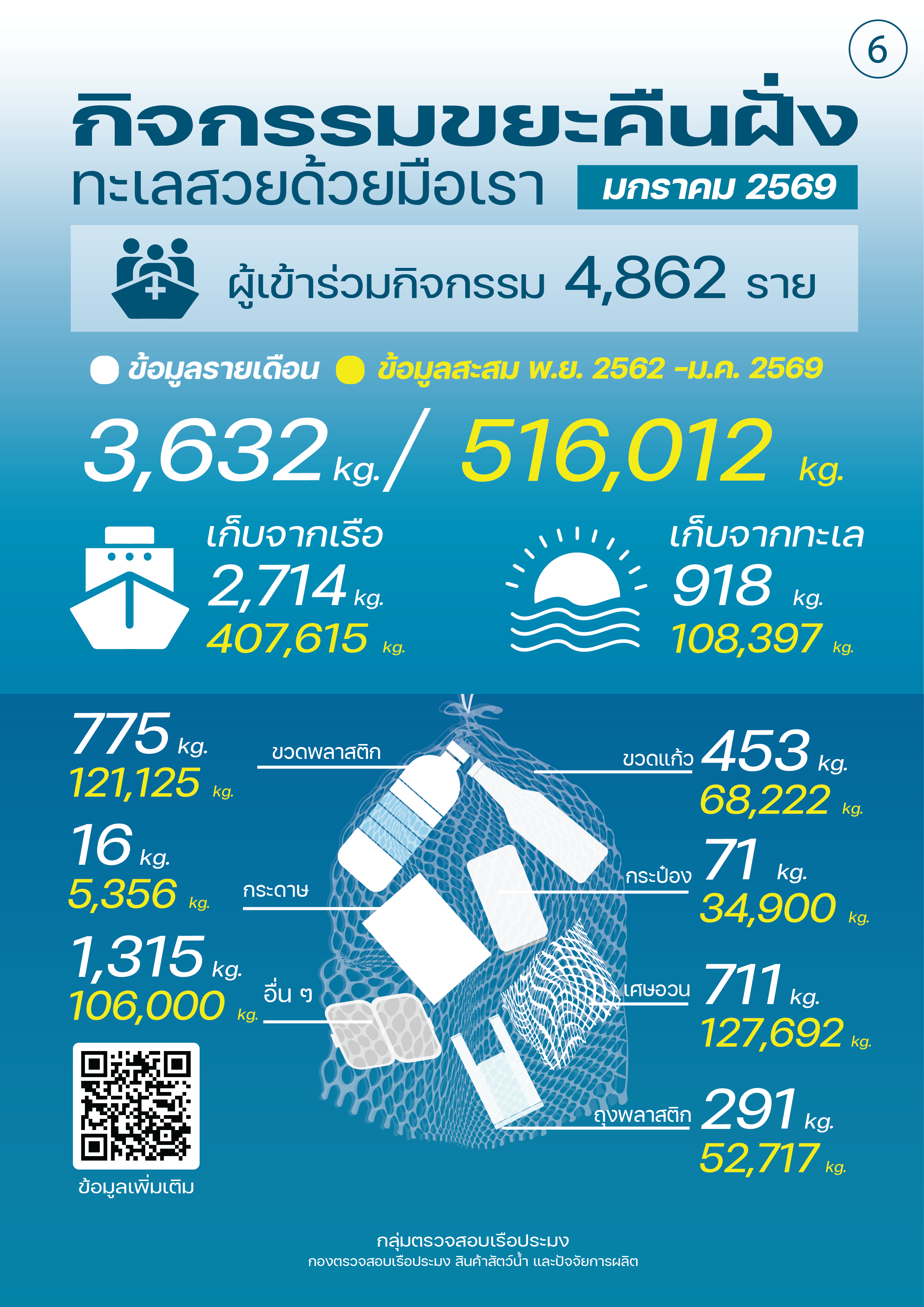 ชาวประมงเก็ยขยะคืนฝั่ง มกราคม 2569
