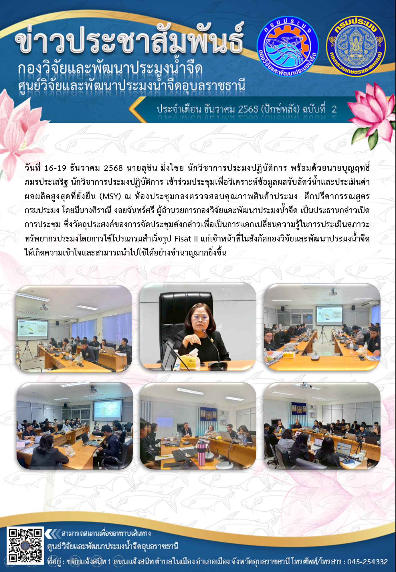 กับข้อเสนอแนะจากเจ้าของข้อมูล โดยศูนย์วิจัยและพัฒนาประมงน้ำจืดอุบลราชธานีจะประกาศแจ้งให้ทราบอย่างชัดเจนก่อนเริ่มดำเนินการ