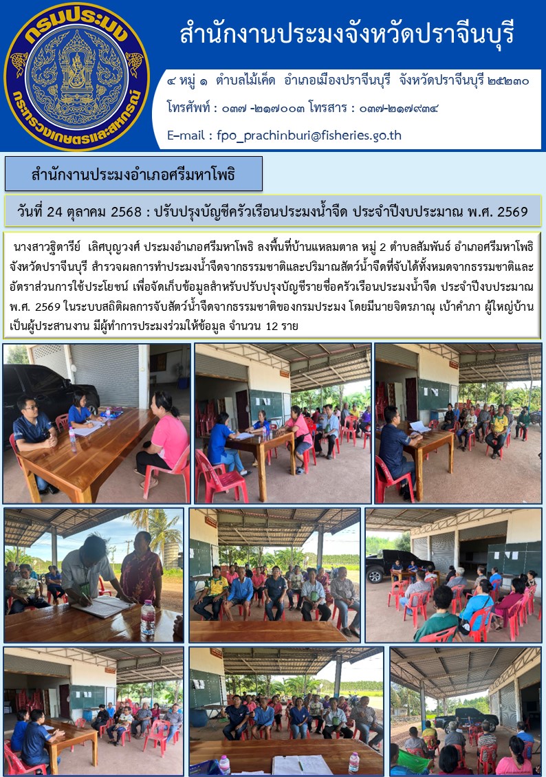 กับข้อเสนอแนะจากเจ้าของข้อมูล โดยสำนักงานประมงจังหวัดปราจีนบุรีจะประกาศแจ้งให้ทราบอย่างชัดเจนก่อนเริ่มดำเนินการ