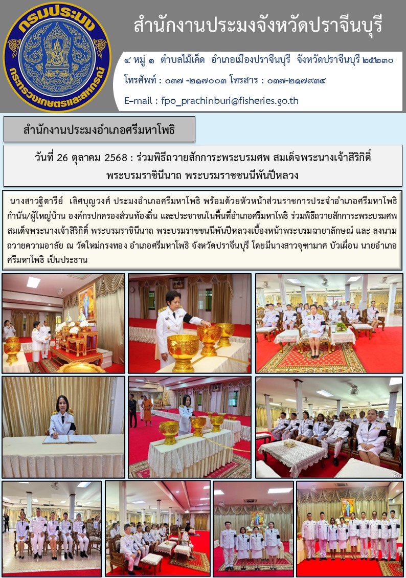 ข่าวประชาสัมพันธ์ สำนักงานประมงอำเภอศรีมหาโพธิ ร่วมพิธีถวายสักการะพระบรมศพ สมเด็จพระนางเจ้าสิริกิติ์ พระบรมราชินีนาถ พระบรมราชชนนีพันปีหลวง