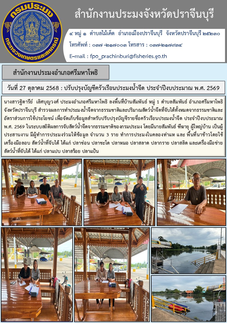 ข่าวประชาสัมพันธ์ สำนักงานประมงอำเภอศรีมหาโพธิ ลงพื้นที่บ้านสัมพันธ์ หมู่ 1 ตำบลสัมพันธ์ อำเภอศรีมหาโพธิ จังหวัดปราจีนบุรี