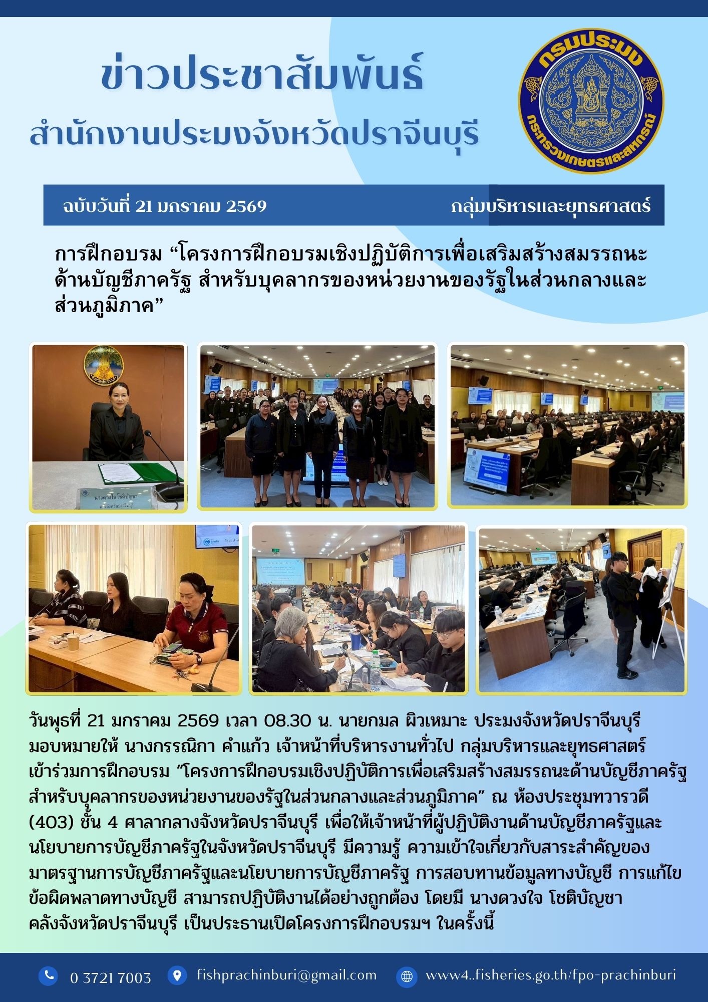 ข่าวประชาสัมพันธ์ กลุ่มบริหารและยุทรศาสตร์ ฝึกอบรม “โครงการฝึกอบรมเชิงปฏิบัติการเพื่อเสริมสร้างสมรรถนะ ด้านบัญชีภาครัฐ สำหรับบุคลากรของหน่วยงานของรัฐในส่วนกลางและ ส่วนภูมิภาค”
