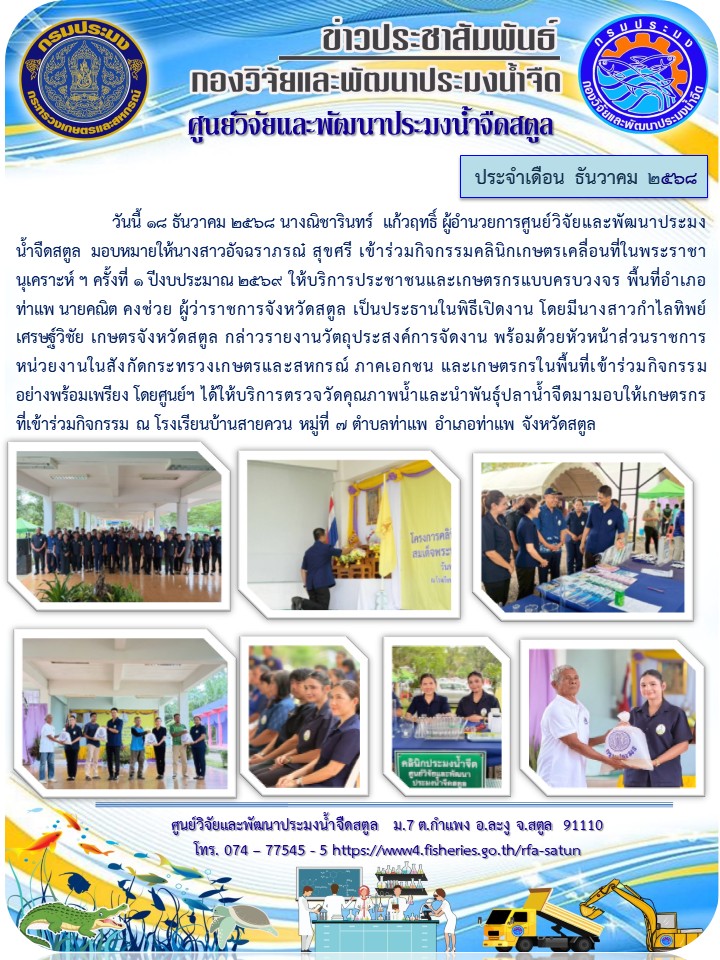 ข่าวประชาสัมพันธ์ ศปจ.สตูล ประจำเดือนธันวาคม 2568
