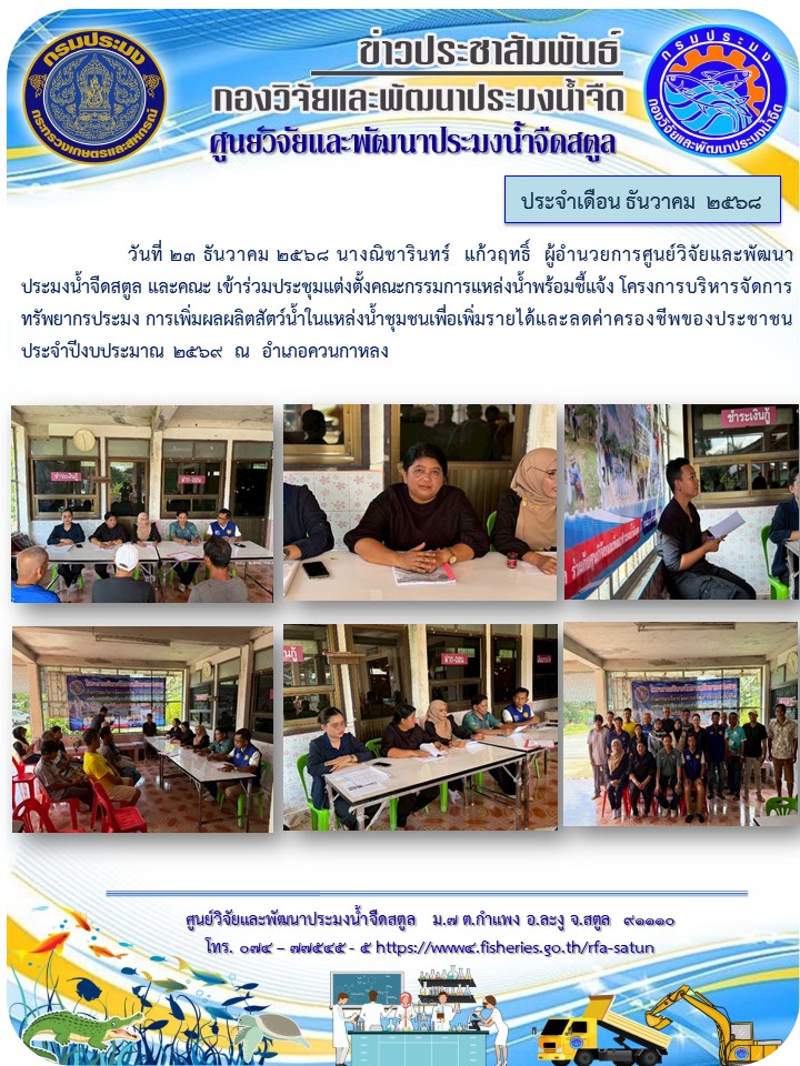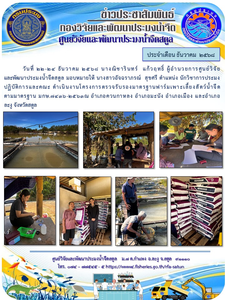 รวบรวมข่าวประชาสัมพันธ์ ศูนย์วิจัยและพัฒนาประมงน้ำจืดสตูล