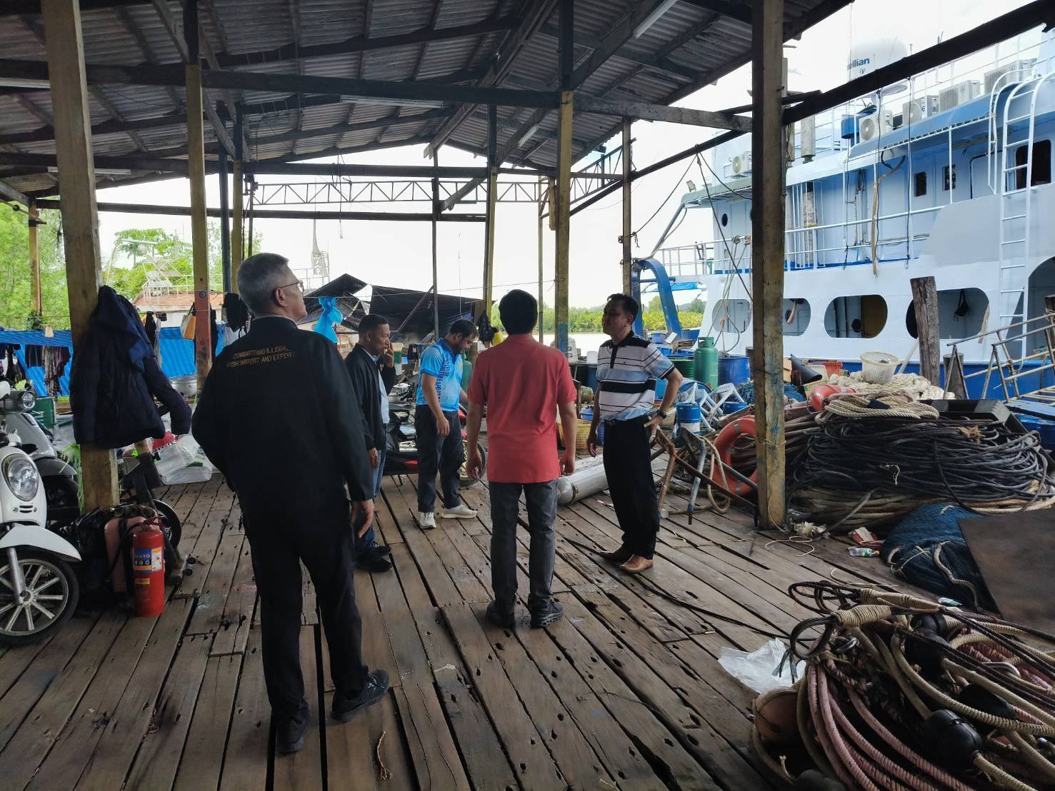 วันเสาร์ที่ 27 กันยายน 2568 นายซุลกีฟลี ละติฟีปุตรา ผู้อำนวยการกองตรวจสอบเรือประมง สินค้าสัตว์น้ำ และปัจจัยการผลิต กรมประมง นายปิยะโชค สินอนันต์ หัวหน้ากลุ่มตรวจสอบสัตว์น้ำ และท่าเทียบเรือประมง ลงพื้นที่จังหวัดตรัง  ตรวจเยี่ยมด่านตรวจประมงตรัง รับฟังปัญหาอุปสรรคในการทำงาน ร่วมตรวจท่าเทียบเรือในพื้นที่ รวมถึงโรงงานปลาป่น โดยมีนายธีระชัย ทิพย์ดวง ผู้อำนวยการศูนย์บริหารจัดการด่านตรวจประมง เขต 9 สตูล นายฟารีซี มะหมัด หัวหน้าด่านประมงตรัง ให้การต้อนและนำตรวจเป็นอย่างดี