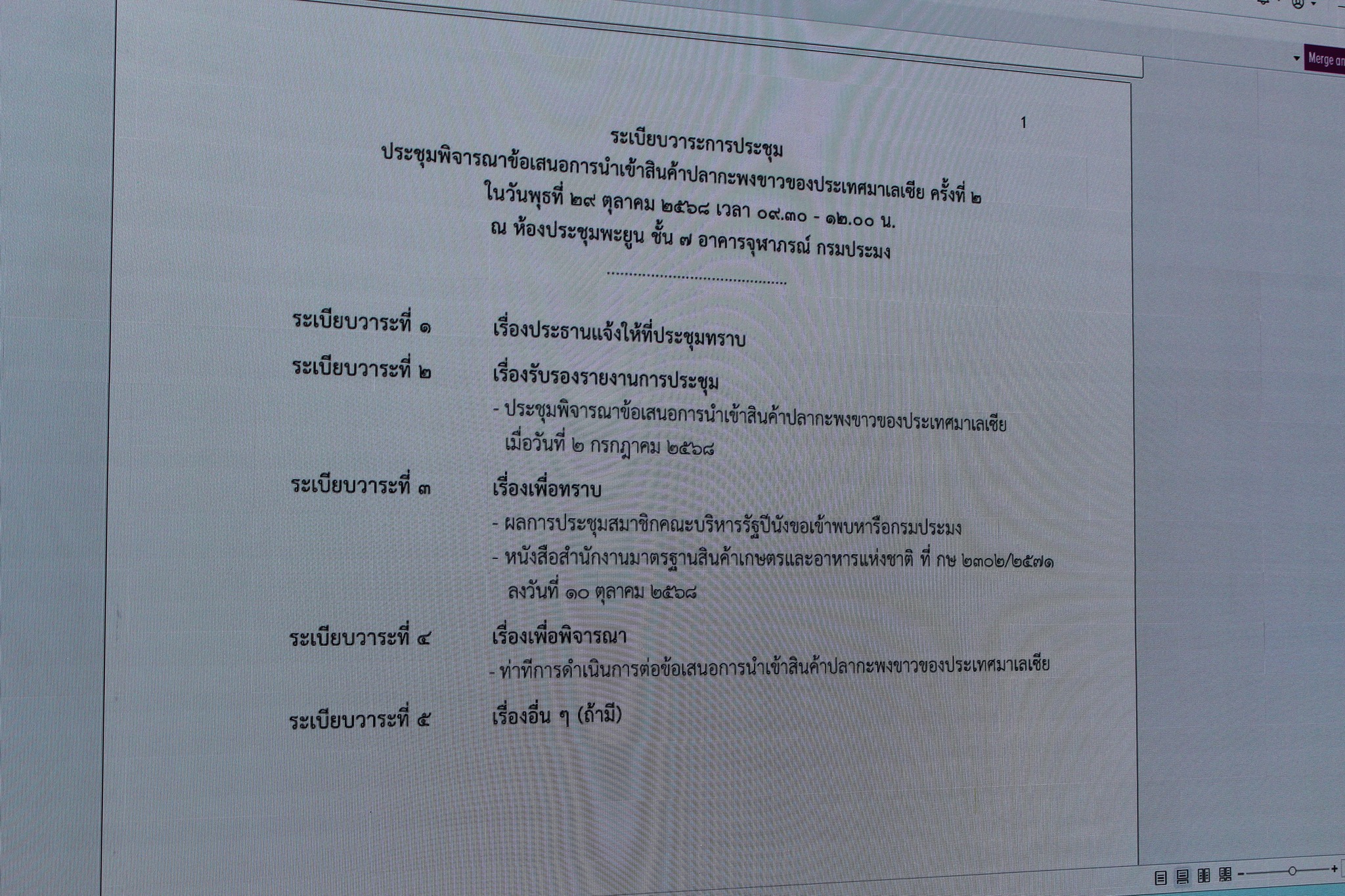 เมื่อวันพุธที่ 29 ตุลาคม 2568 เวลา 13.30 - 16.00 น. ณ ห้องประชุมพะยูน ชั้น 7 อาคารจุฬาภรณ์ กรมประมง นายสุวัฐน์ วงศ์สุวัฒน์ รองอธิบดีกรมประมง เป็นประธานการประชุม พร้อมด้วยนายซุลกีฟลี ลติฟีปุตรา ผู้อำนวยการกองตรวจสอบเรือประมง สินค้าสัตว์น้ำ และปัจจัยการผลิต กรป. กรมประมง ร่วมประชุมพิจารณาข้อเสนอการนำเข้าปลากะพงขาวจากประเทศคู่ค้าของไทย ครั้งที่ 2 โดยมีผู้เชี่ยวชาญ ผู้อำนวยการกองฯ ผู้แทนจากสำนักงานมาตรฐานสินค้าเกษตรและอาหารแห่งชาติ (มกอช.) และเจ้าหน้าที่ที่เกี่ยวข้องเข้าประชุม ติดตามความก้าวหน้า เพื่อรับทราบหนังสือจากสำนักงานมาตรฐานสินค้าเกษตรและอาหารแห่งชาติ และพิจารณาท่าทีการดำเนินการต่อข้อเสนอการนำเข้าปลากะพงขาวจากประเทศคู่ค้าของไทย รวมถึงประเด็นอื่นๆที่เกี่ยวข้อง เป็นประธานการประชุม