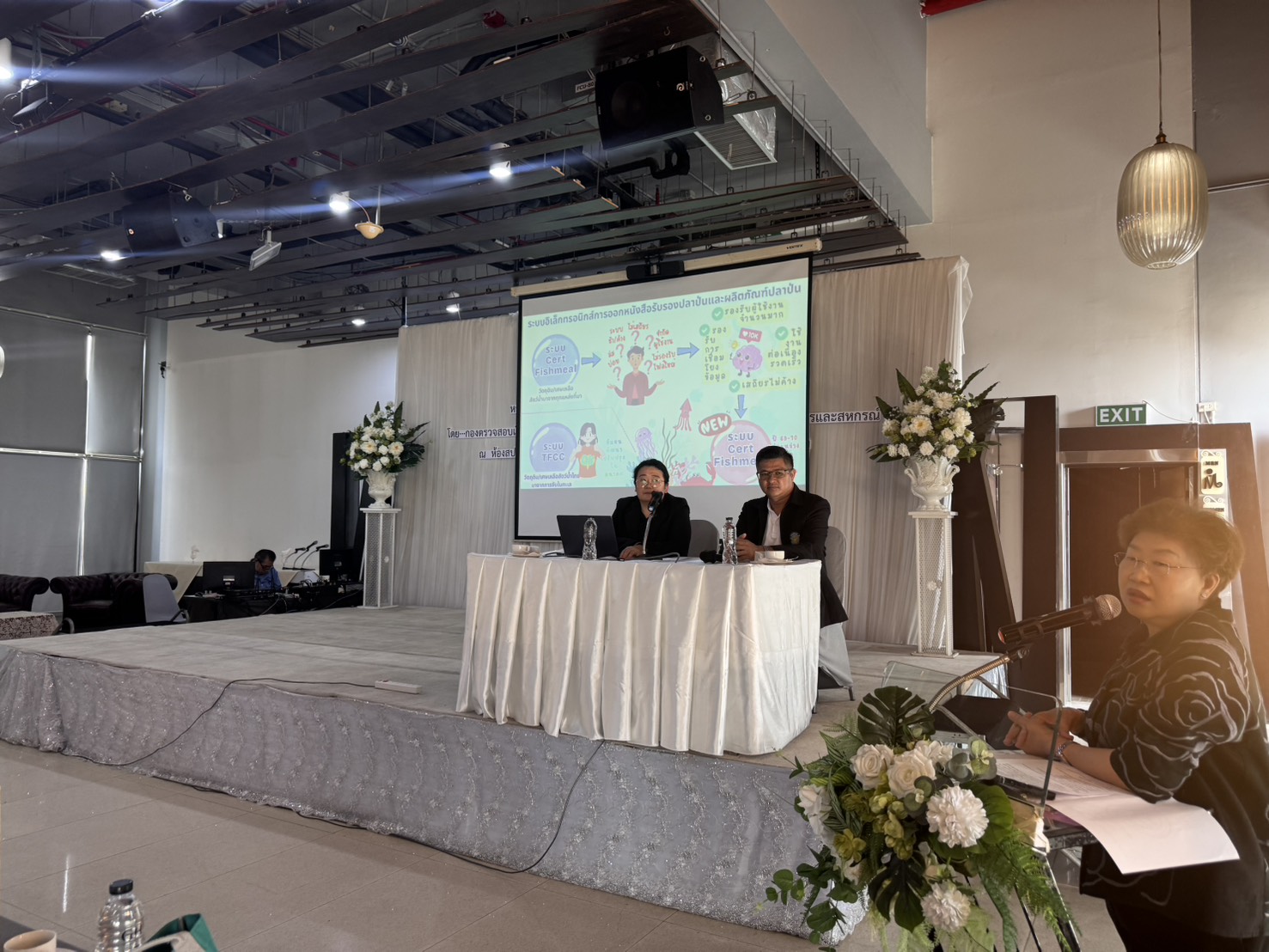 วันศุกร์ที่ 31 ตุลาคม 2568 นายซุลกีฟลี ลติฟีปุตรา ผู้อำนวยการกองตรวจสอบเรือประมง สินค้าสัตว์น้ำ และปัจจัยการผลิต นายจิติวัฒน์ เหล็งบำรุง หัวหน้ากลุ่มวิเคราะห์และพัฒนาระบบ การตรวจสอบเรือประมง สินค้าสัตว์น้ำ และปัจจัยการผลิต พร้อมเจ้าหน้าที่ที่เกี่ยวข้อง ได้เข้าร่วมการประชุมใหญ่สามัญสมาชิกประจำปี ครั้งที่ 1/2568 ณ โรงแรมแกรนด์ ฮาวเวิร์ด กรุงเทพมหานคร ท่านผู้อำนวยการกองตรวจสอบเรือประมง สินค้าสัตว์น้ำ และปัจจัยการผลิต ได้กล่าวเปิดการประชุมฯ และมอบโล่ให้แก่ผู้ส่งออกปลาป่นดีเด่น พร้อมทั้งได้มีการหารือร่วมกับสมาชิกสมาคมผู้ผลิตปลาป่นไทย เกี่ยวกับปัญหาและแนวทางในการพัฒนาระบบ Cert fishmeal