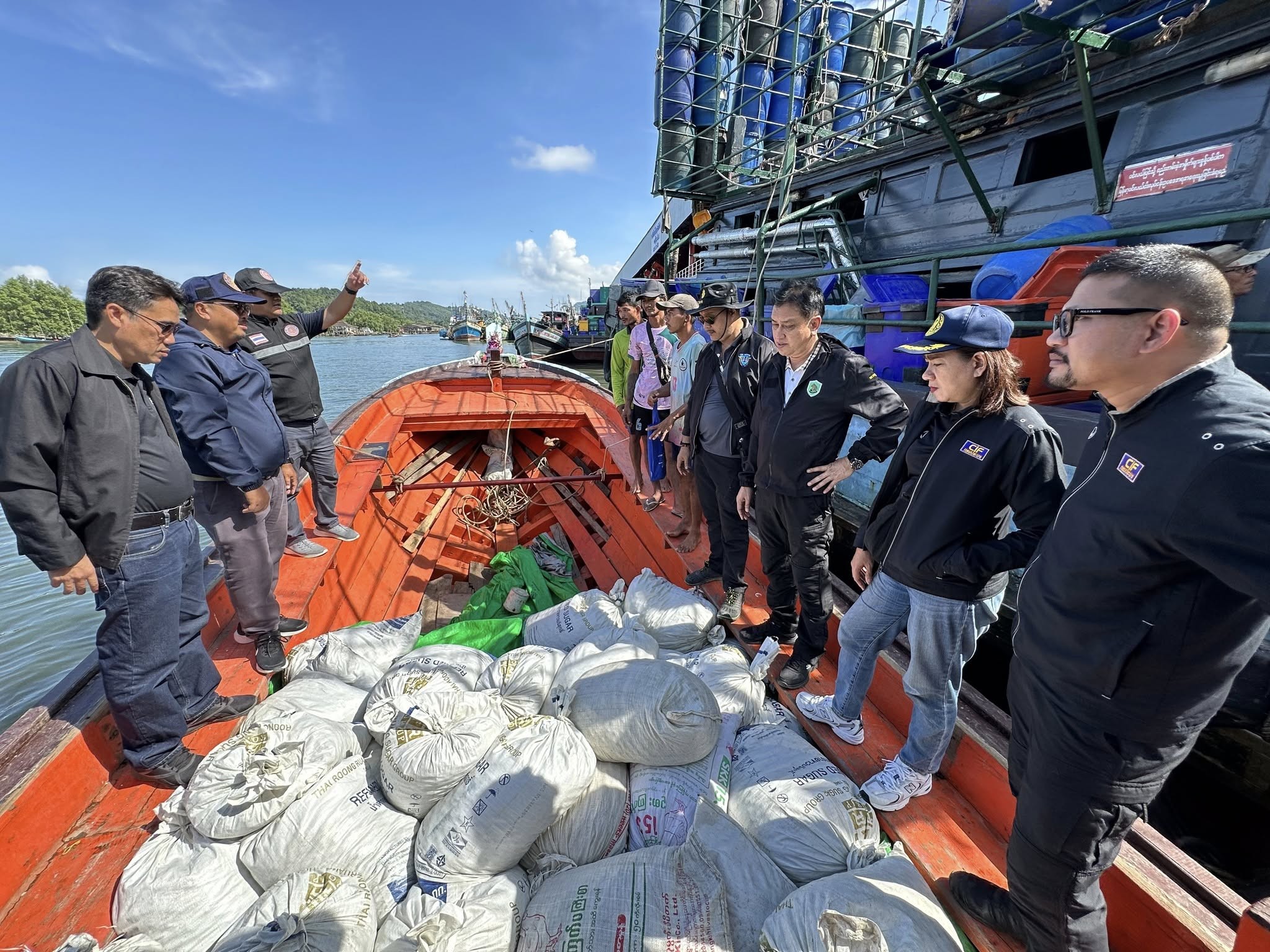 มื่อวันศุกร์ที่ 14 พฤศจิกายน 2568 ณ จังหวัดระนอง นายซุลกีฟลี ลติฟีปุตรา ผู้อำนวยการกองตรวจสอบเรือประมง สินค้าสัตว์น้ำ และปัจจัยการผลิต กรมประมง พร้อมด้วยนางยุพดี ทองมี หัวหน้ากลุ่มควบคุมการนำเข้า–ส่งออกสัตว์น้ำ และนายปริญญา ขำวารี นักวิชาการประมงชำนาญการ ลงพื้นที่จังหวัดระนอง เพื่อติดตามการปฏิบัติงานด้านการตรวจสอบการควบคุมสินค้าสัตว์น้ำที่นำเข้าสู่ประเทศ ในการลงพื้นที่ครั้งนี้ มีนายตะวัน คงสี ผู้อำนวยการศูนย์บริหารจัดการด่านตรวจประมงเขต 10 (พังงา) นายปราโมทย์ ฉิมหาด หัวหน้าด่านตรวจประมงระนอง เจ้าหน้าที่สำนักงานประมงจังหวัดระนอง และเจ้าหน้าที่ด่านตรวจประมงระนอง ร่วมลงเรือเพื่อตรวจสอบช่องทางการเดินเรือสำหรับนำเข้าสินค้าสัตว์น้ำ ตรวจสอบเรือสินค้าและแพ รวมถึงติดตามขั้นตอนการขนถ่ายสินค้าสัตว์น้ำ โดยเฉพาะ “หอยลาย” เพื่อให้มั่นใจว่าการขนถ่ายเป็นไปตามมาตรฐานความปลอดภัยและกฎหมายที่เกี่ยวข้อง นอกจากนี้ ทางคณะฯ ได้ลงพื้นที่พบปะผู้ประกอบการในท้องถิ่น เพื่อรับฟังข้อเสนอแนะและปัญหาที่เกิดขึ้นจริงในการนำเข้าสัตว์น้ำ อาทิ การจัดการเอกสาร การตรวจสอบคุณภาพ และอุปสรรคในขั้นตอนการขนถ่ายสินค้า เพื่อนำข้อมูลไปปรับปรุงกระบวนการทำงานให้มีประสิทธิภาพมากยิ่งขึ้น  สำหรับการปฏิบัติภารกิจครั้งนี้ ได้รับการสนับสนุนด้านความปลอดภัยจาก ชปพ.นก.พตน.ศรชล.ภาค 3 ให้การดูแล ตลอดจนช่วยอำนวยความสะดวกด้านการเดินเรือและการปฏิบัติหน้าที่ของเจ้าหน้าที่ เพื่อให้การตรวจสอบเป็นไปอย่างราบรื่นและมีประสิทธิภาพ