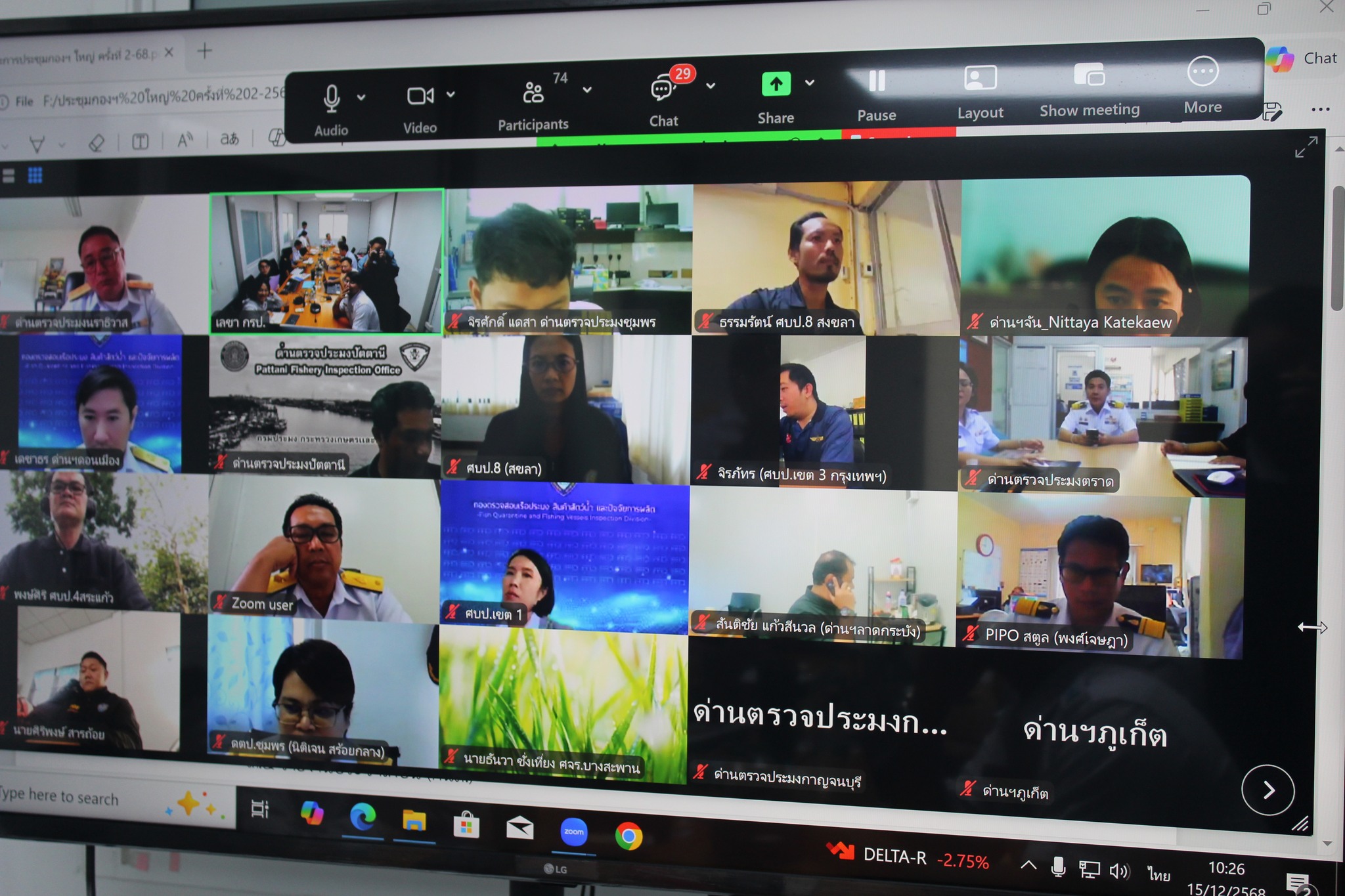 เมื่อวันจันทร์ที่ 15 ธันวาคม 2568 เวลา 09.00 น. นายซุลกีฟลี ลติฟีปุตรา ผู้อำนวยการกองตรวจสอบเรือประมง สินค้าสัตว์น้ำ และปัจจัยการผลิต กรป. กรมประมง เป็นประธานในการประชุมกองฯ พร้อมด้วยหัวหน้ากลุ่มฯ/ฝ่ายฯ ผู้อำนวยการศูนย์บริหารจัดการด่านประมงเขต 1-10 หัวหน้าด่านตรวจประมง และเจ้าหน้าที่ในสังกัดกองตรวจสอบเรือประมง สินค้าสัตว์น้ำ และปัจจัยการผลิต เข้าร่วมประชุม ณ ห้องประชุมตะลุมพุก กองตรวจสอบเรือประมง สินค้าสัตว์น้ำ และปัจจัยการผลิต กรป. กรมประมง และผ่านระบบออนไลน์ Zoom Meeting รับฟังปัญหาอุปสรรคในการทำงาน งบประมาณ บุคลากร สถานที่ตั้งศูนย์ฯ/ด่านฯ รถราชการ ให้คำแนะนำแนวทางการปฎิบัติงาน และเน้นย้ำการปฏิบัติงานด้านต่างๆ แนะนำการปฎิบัติงานของด่านฯที่ติดชายแดน ที่ได้รับผลกระทบจากปัญหาความขัดแย้ง เตรียมความพร้อมในการใช้มาตรการการควบคุมการส่งออกสัตว์น้ำหรือผลิตภัณฑ์สัตว์น้ำไปยังสหรัฐอเมริกา ภายใต้กฎหมายว่าด้วยการนำเข้าสินค้าสัตว์น้ำ เพื่อคุ้มครองสัตว์ทะเลที่เลี้ยงลูกด้วยนม MMPA ที่จะเริ่มในวันที่ 1 มกราคม 2569