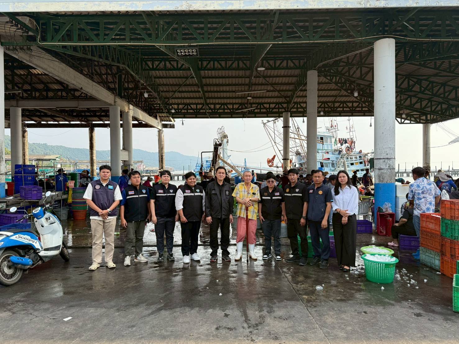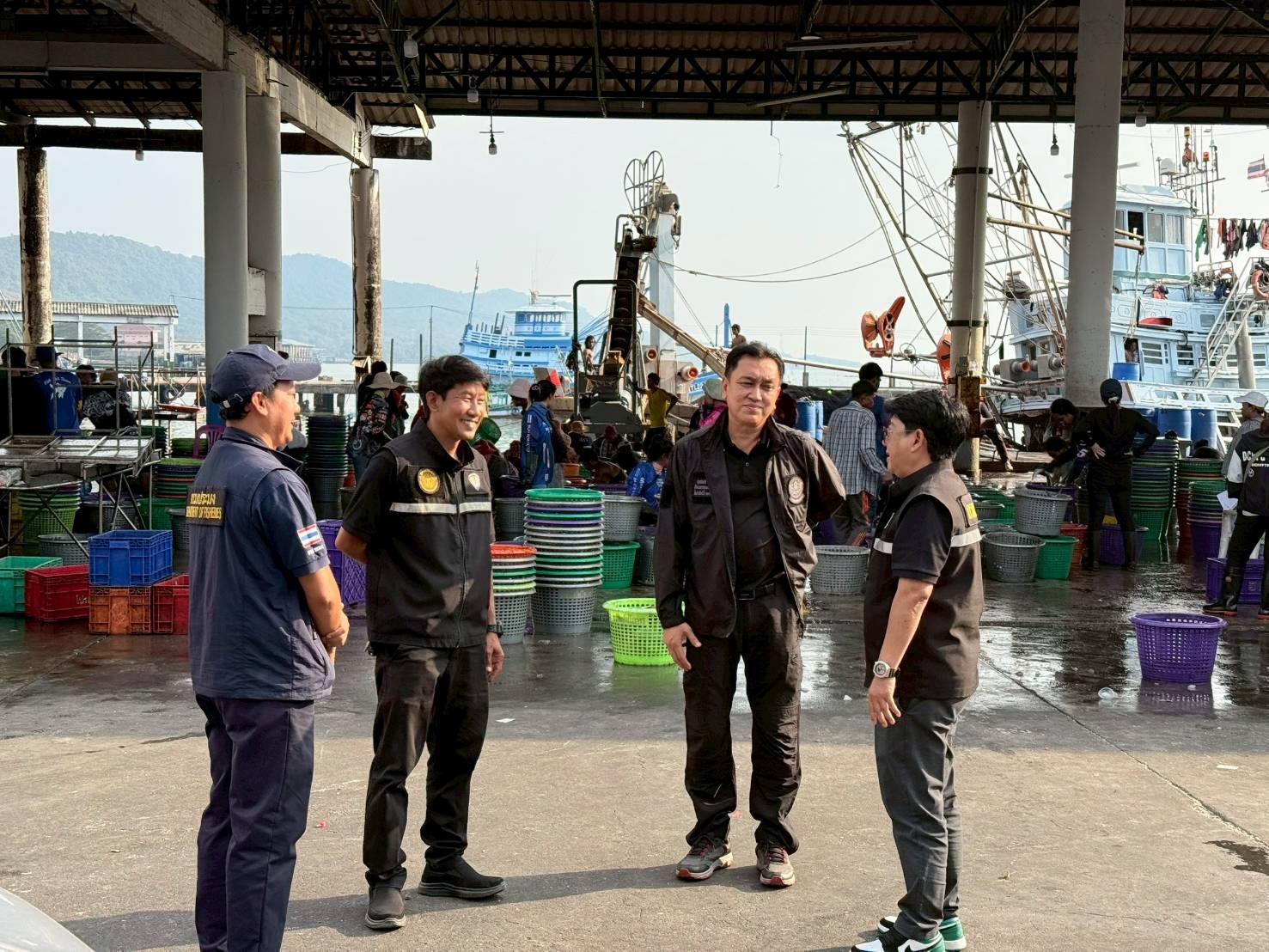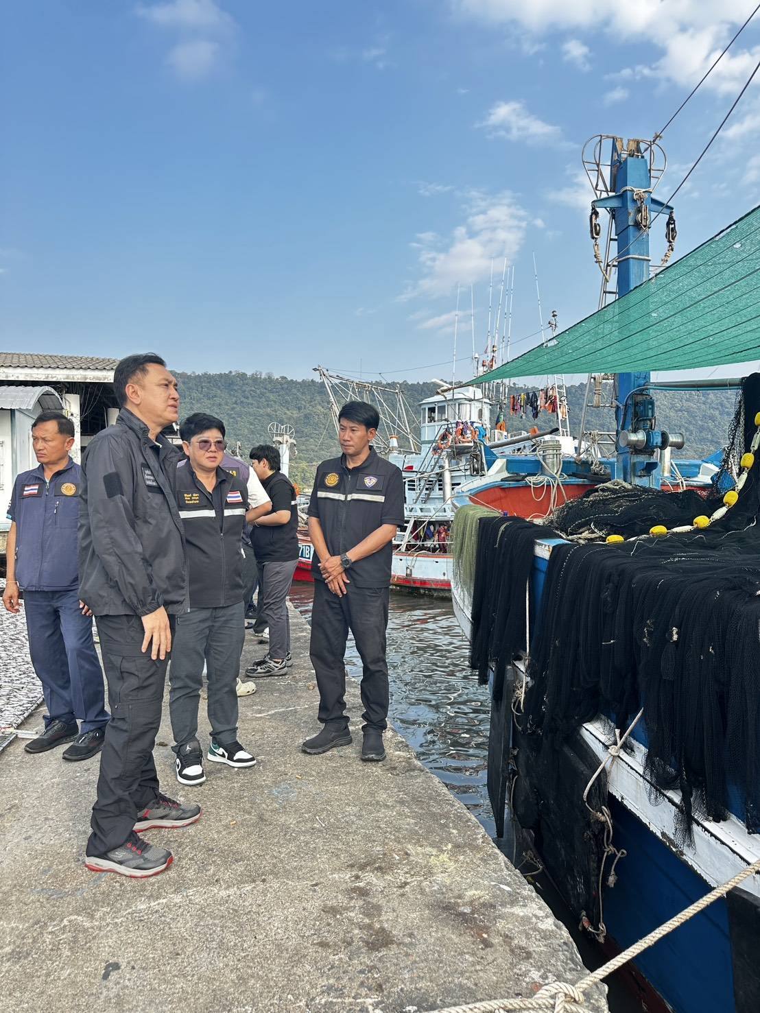 เมื่อวันพฤหัสบดีที่ 15 มกราคม 2569 นายซุลกีฟลี ลติฟีปุตรา ผู้อำนวยการกองตรวจสอบเรือประมง สินค้าสัตว์น้ำ และปัจจัยการผลิต  กรป. กรมประมง พร้อมด้วยนายเพชร แจ่มแจ้ง ร่วมลงพื้นที่ โดยมีนายวรพงศ์ เฉลิมกุล หัวหน้าด่านตรวจประมงตราด พร้อมด้วยเจ้าหน้าที่ด่านตรวจประมงตราด เจ้าหน้าที่ศูนย์บริหารจัดการด่านตรวจประมงเขต 4 (สระแก้ว) และประมงอำเภอคลองใหญ่ ร่วมตรวจสอบและติดตามการปฏิบัติงานการนำเข้าส่งออกสินค้าประมง ท่าเรือประมง ในพื้นที่รับผิดชอบของด่านตรวจประมงตราด ณ ศูนย์รวมราชการชายแดนบ้านหาดเล็ก ด่านตรวจประมงตราด จุดผ่านแดนถาวรบ้านหาดเล็ก ศูนย์ควบคุมการแจ้งเรือเข้าออก PIPO คลองใหญ่ ท่าเทียบเรือกัลปังหา และท่าเรือในพื้นที่