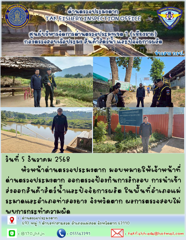 ประชาสัมพันธ์การ ตรวจป้องกันการลักลอบ การนำเข้า ส่งออกสินค้าสัตว์น้ำและปัจจัยการผลิต วันที่ 5 ธันวาคม 2568