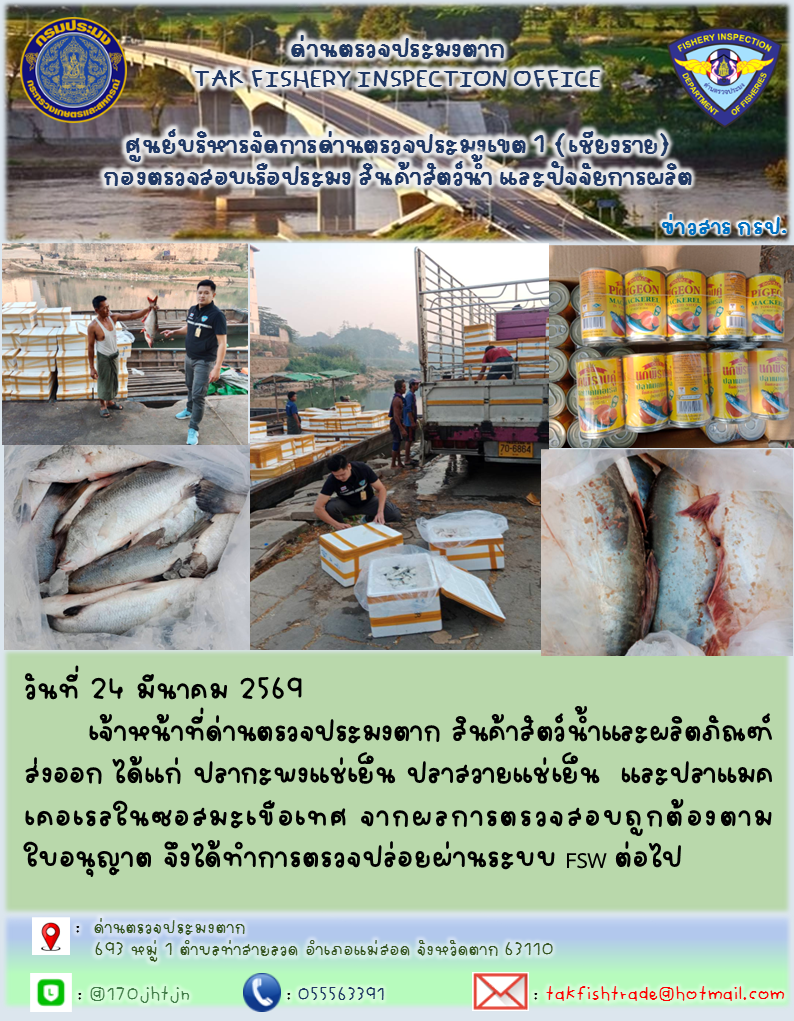 ประชาสัมพันธ์การนำเข้าส่งออกสัตว์น้ำและผลิตภัณฑ์สัตว์น้ำ วันที่ 24 มีนาคม 2569