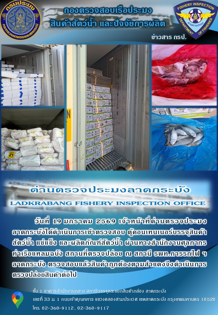 ตรวจสอบสินค้าสัตว์น้ำนำเข้าประจำวันที่ 19 มกราคม 2569