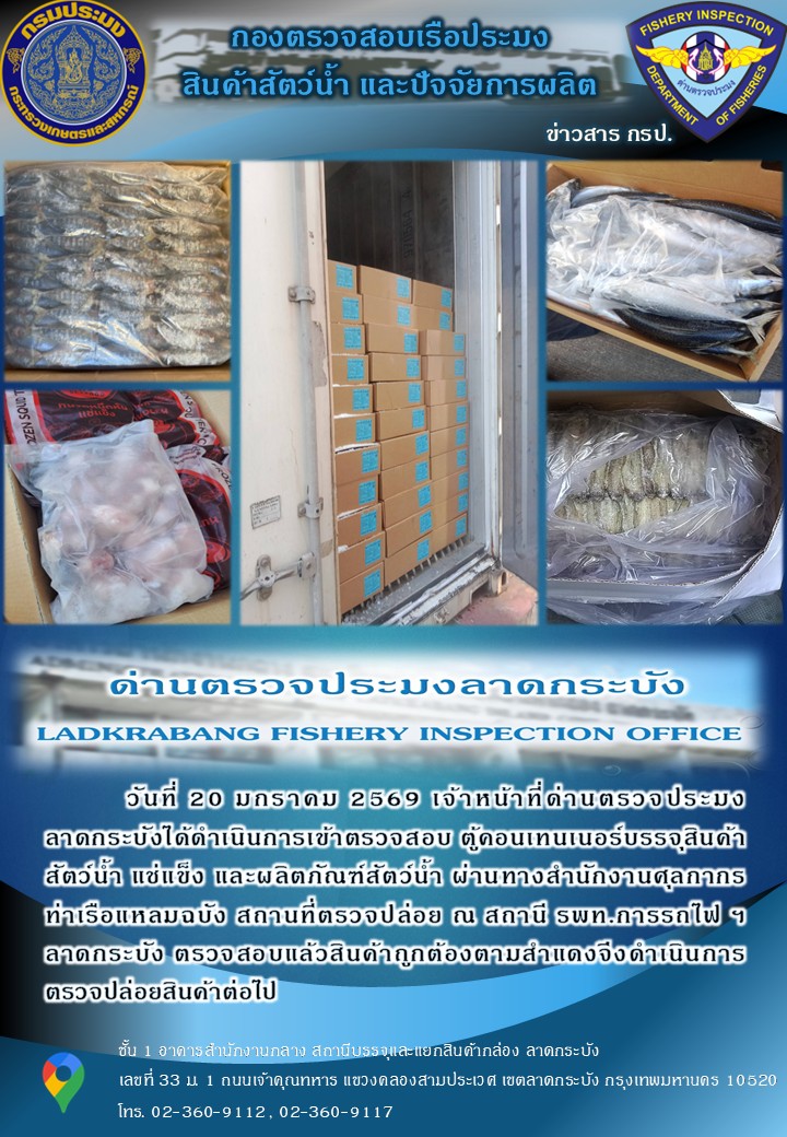 ตรวจสอบสินค้าสัตว์น้ำนำเข้าประจำวันที่ 20 มกราคม 2569