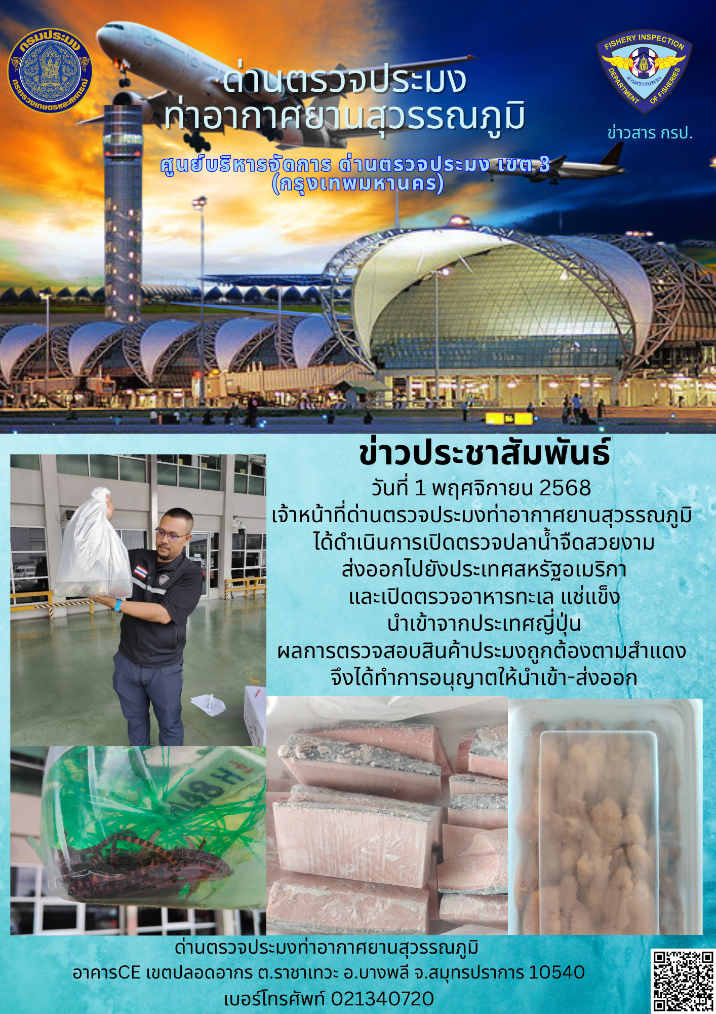 [2025-11-01] เจ้าหน้าที่ด่านตรวจประมงท่าอากาศยานสุวรรณภูมิ ได้ดำเนินการเปิดตรวจสินค.. [2025-10-30] เจ้าหน้าที่ด่านตรวจประมงท่าอากาศยานสุวรรณภูมิ ได้ดำเนินการเปิดตรวจสินค.. [2025-10-29] เจ้าหน้าที่ด่านตรวจประมงท่าอากาศยานสุวรรณภูมิ ได้ดำเนินการเปิดตรวจสินค.. [2025-10-27] เจ้าหน้าที่ด่านตรวจประมงท่าอากาศยานสุวรรณภูมิ ได้ดำเนินการเปิดตรวจสินค.. [2025-10-24] เจ้าหน้าที่ด่านตรวจประมงท่าอากาศยานสุวรรณภูมิ.. [2025-10-23] เจ้าหน้าที่ด่านตรวจประมงท่าอากาศยานสุวรรณภูมิ ได้ดำเนินการเปิดตรวจสินค.. [2025-10-20] เจ้าหน้าที่ด่านตรวจประมงท่าอากาศยานสุวรรณภูมิ ได้ดำเนินการเปิดตรวจสินค.. [2025-10-18] เจ้าหน้าที่ด่านตรวจประมงท่าอากาศยานสุวรรณภูมิ ได้ดำเนินการเปิดตรวจสินค.. [2025-10-15] เจ้าหน้าที่ด่านตรวจประมงท่าอากาศยานสุวรรณภูมิ ได้ดำเนินการเปิดตรวจสินค.. [2025-10-13] เจ้าหน้าที่ด่านตรวจประมงท่าอากาศยานสุวรรณภูมิ ได้ดำเนินการเปิดตรวจสินค.. อ่านทั้งหมด
