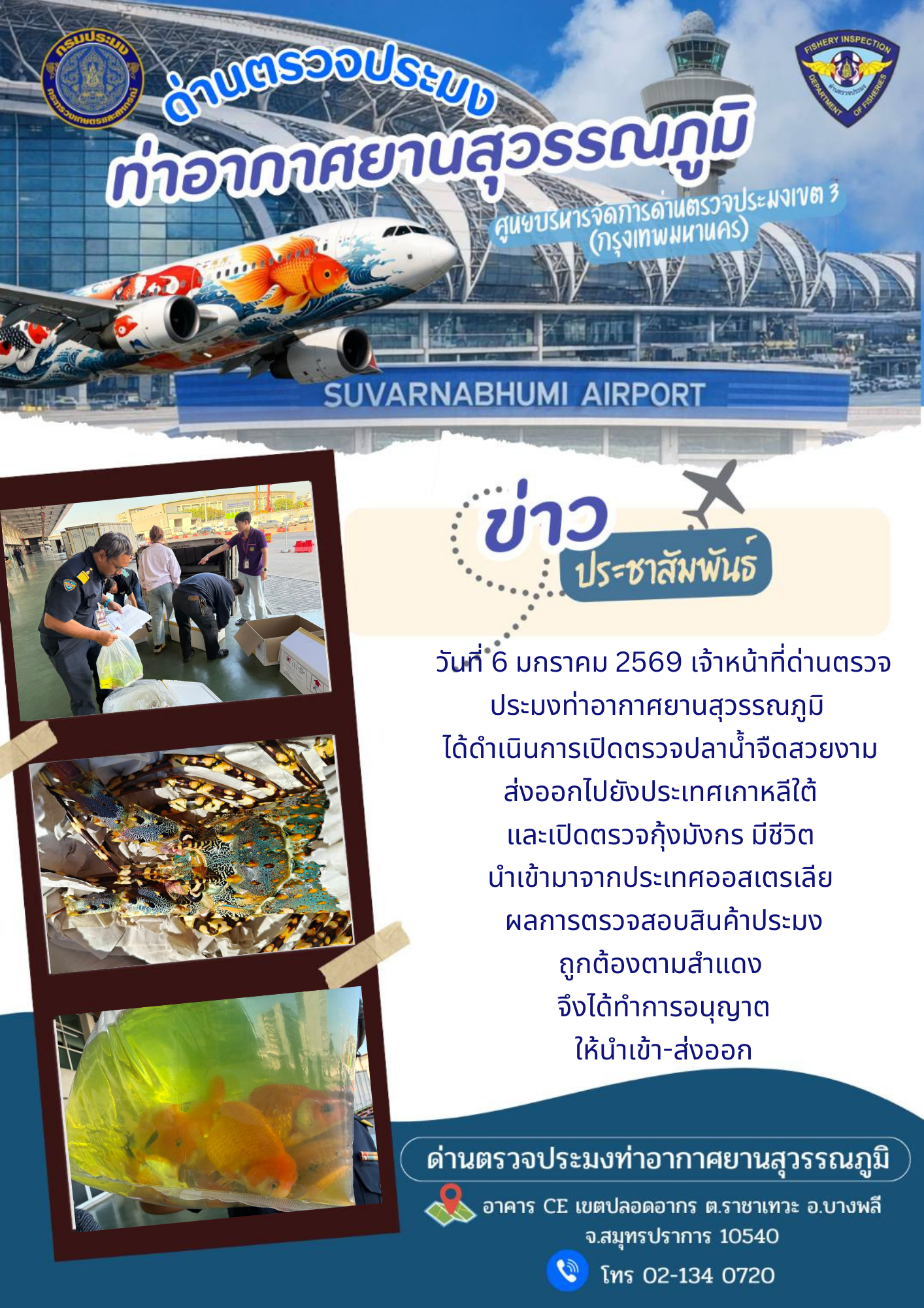 วันที่ 6 มกราคม 2569 เจ้าหน้าที่ด่านตรวจประมงท่าอากาศยานสุวรรณภูมิ