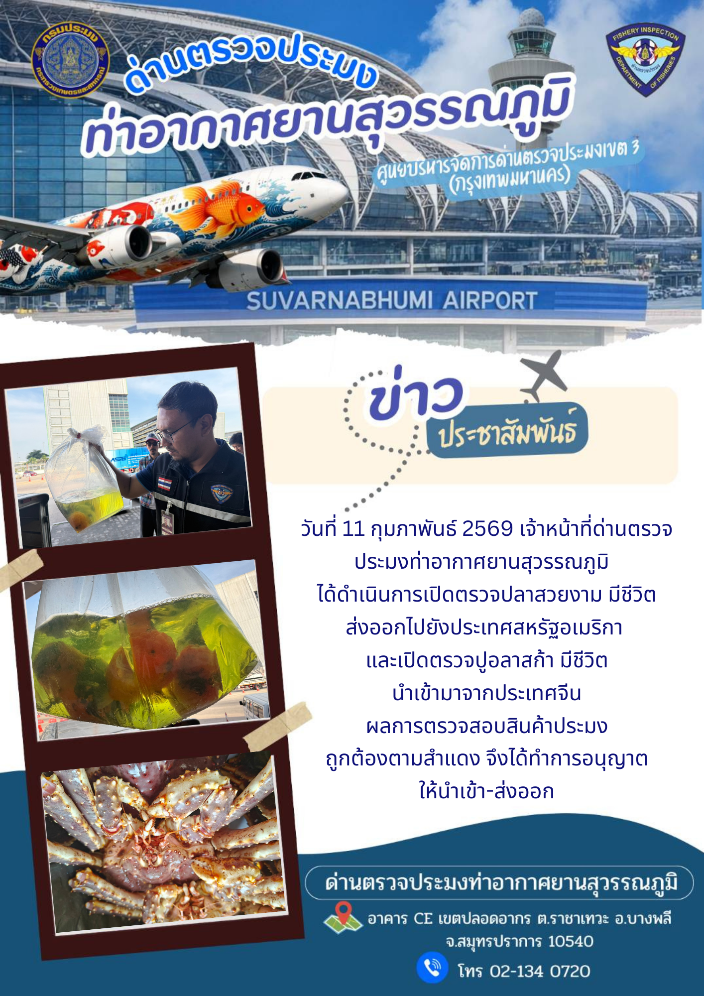 วันที่ 11 กุมภาพันธ์ 2569 เจ้าหน้าที่ด่านตรวจประมงท่าอากาศยานสุวรรณภูมิ