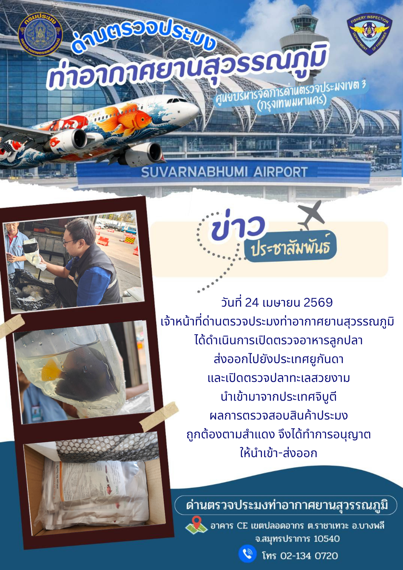 [2026-04-24] เจ้าหน้าที่ด่านตรวจประมงท่าอากาศยานสุวรรณภูมิ ได้ดำเนินการเปิดตรวจสินค.. [2026-04-22] เจ้าหน้าที่ด่านตรวจประมงท่าอากาศยานสุวรรณภูมิ ได้ดำเนินการเปิดตรวจสินค.. [2026-04-16] เจ้าหน้าที่ด่านตรวจประมงท่าอากาศยานสุวรรณภูมิ ได้ดำเนินการเปิดตรวจสินค.. [2026-04-10] เจ้าหน้าที่ด่านตรวจประมงท่าอากาศยานสุวรรณภูมิ ได้ดำเนินการเปิดตรวจสินค.. [2026-04-09] เจ้าหน้าที่ด่านตรวจประมงท่าอากาศยานสุวรรณภูมิ ได้ดำเนินการเปิดตรวจสินค.. [2026-04-05] เจ้าหน้าที่ด่านตรวจประมงท่าอากาศยานสุวรรณภูมิ ได้ดำเนินการเปิดตรวจสินค.. [2026-04-04] เจ้าหน้าที่ด่านตรวจประมงท่าอากาศยานสุวรรณภูมิ ได้ดำเนินการเปิดตรวจสินค.. [2026-04-03] เจ้าหน้าที่ด่านตรวจประมงท่าอากาศยานสุวรรณภูมิ ได้ดำเนินการเปิดตรวจสินค.. [2026-03-28] เจ้าหน้าที่ด่านตรวจประมงท่าอากาศยานสุวรรณภูมิ ได้ดำเนินการเปิดตรวจสินค.. [2026-03-26] เจ้าหน้าที่ด่านตรวจประมงท่าอากาศยานสุวรรณภูมิ ได้ดำเนินการเปิดตรวจสินค.. อ่านทั้งหมด