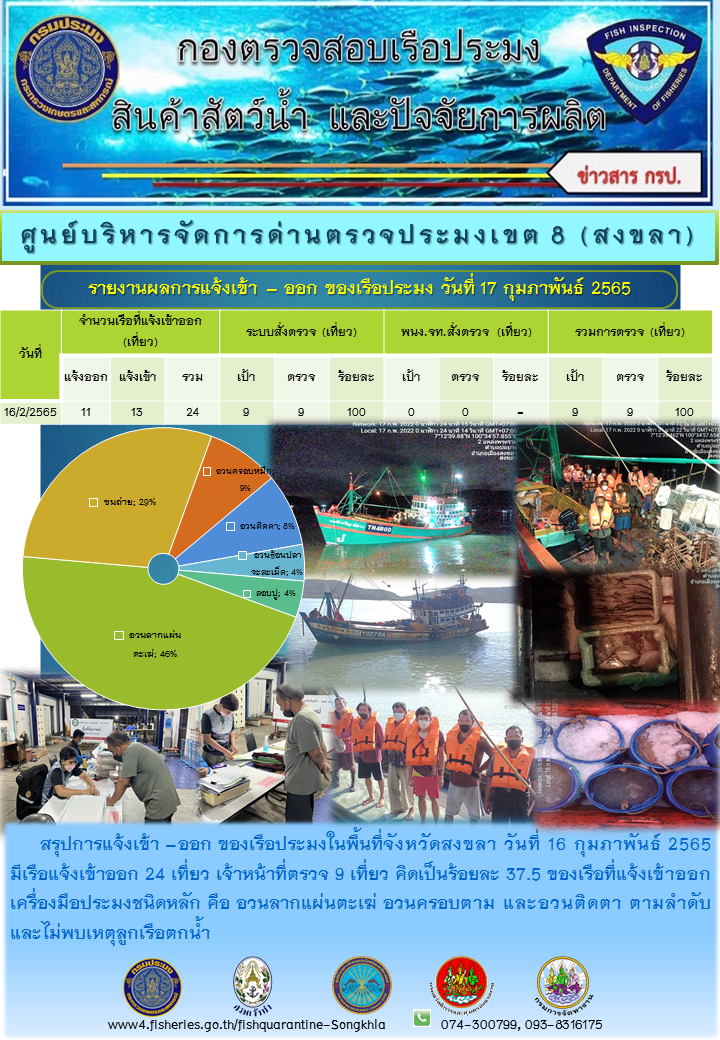 รายงานการแจ้งเข้าออกเรือประมงประจำวันที่ 17.2.65