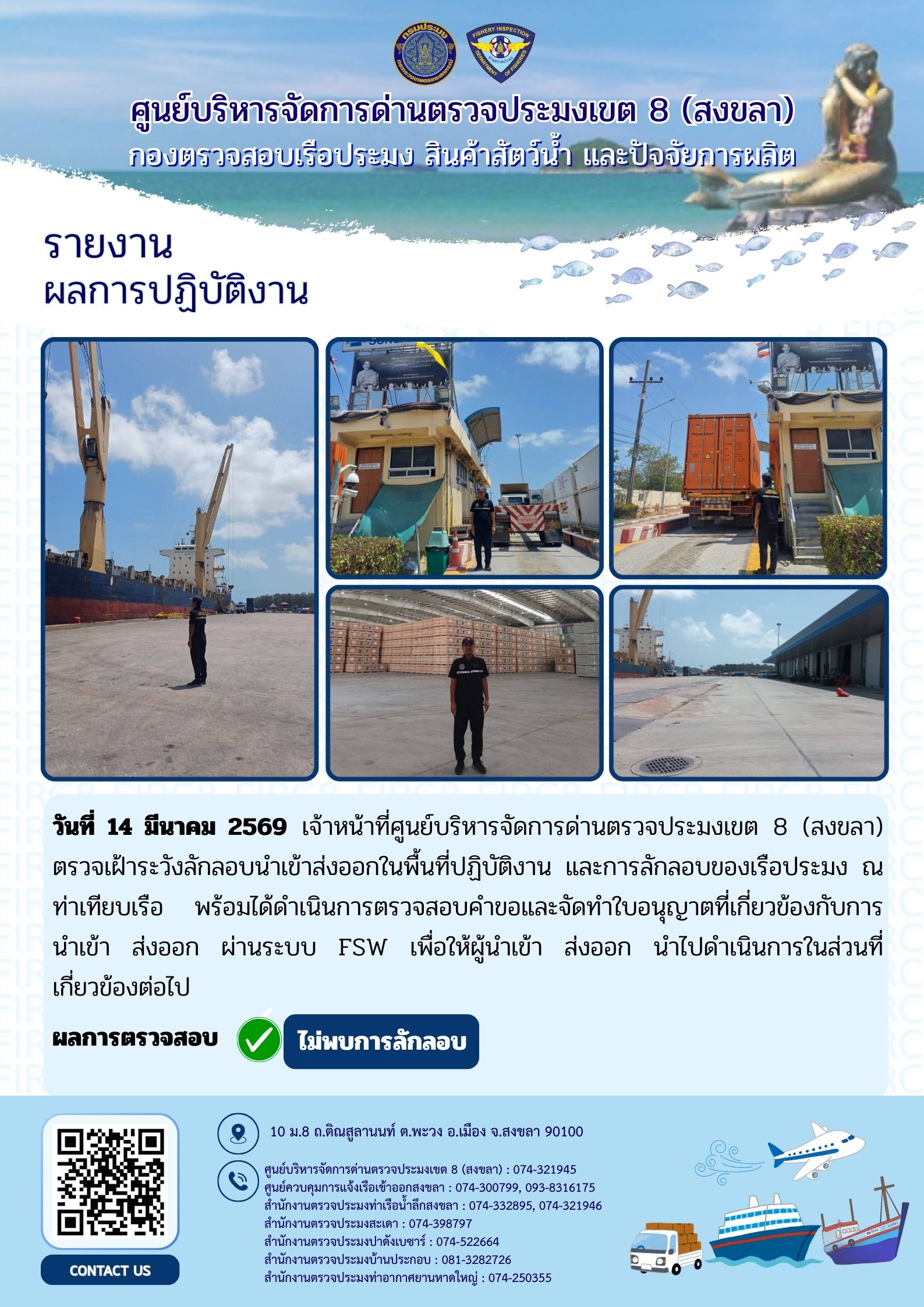 ศูนย์บริหารจัดการด่านตรวจประมงเขต 8 (สงขลา) เลขที่ 50 เกษตรกลาง เขตจตุจักร กรุงเทพมหานคร 10900