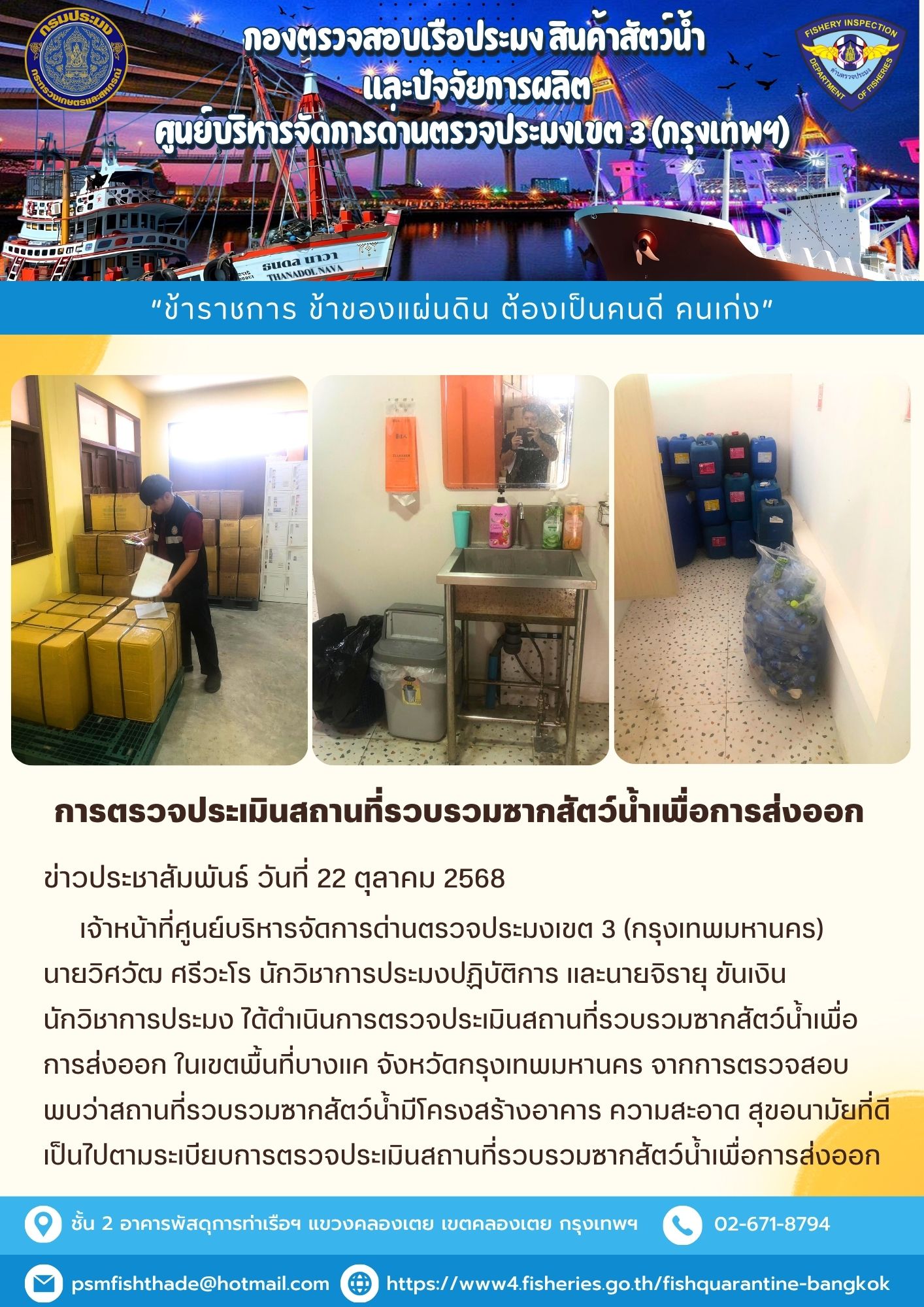 ประชาสัมพันธ์ศูนย์บริหารจัดการด่านตรวจประมงเขต 3 (กรุงเทพมหานคร) ประจำวันที่ 24 ตุลาคม 2568
