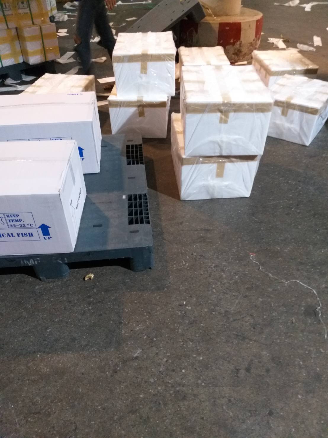 วันที่ 23 ตุลาคม 2562 เวลา 01.30 น. เจ้าหน้าที่ด่านตรวจสัตว์น้ำท่าอากาศยานดอนเมือง ตรวจสอบสินค้าสัตว์น้ำส่งออก ประเภทปลาสวยงามมีชีวิต จำนวน 11 กล่อง ปริมาณ 5320 ตัว ส่งออกไปยังประเทศสิงคโปรเที่ยวบินที่ FD/359 ตรวจสอบแล้วถูกต้องตรงตามใบอนุญาตส่งออก จึงตรวจปล่อยอนุญาตให้ส่งออกต่อไป
