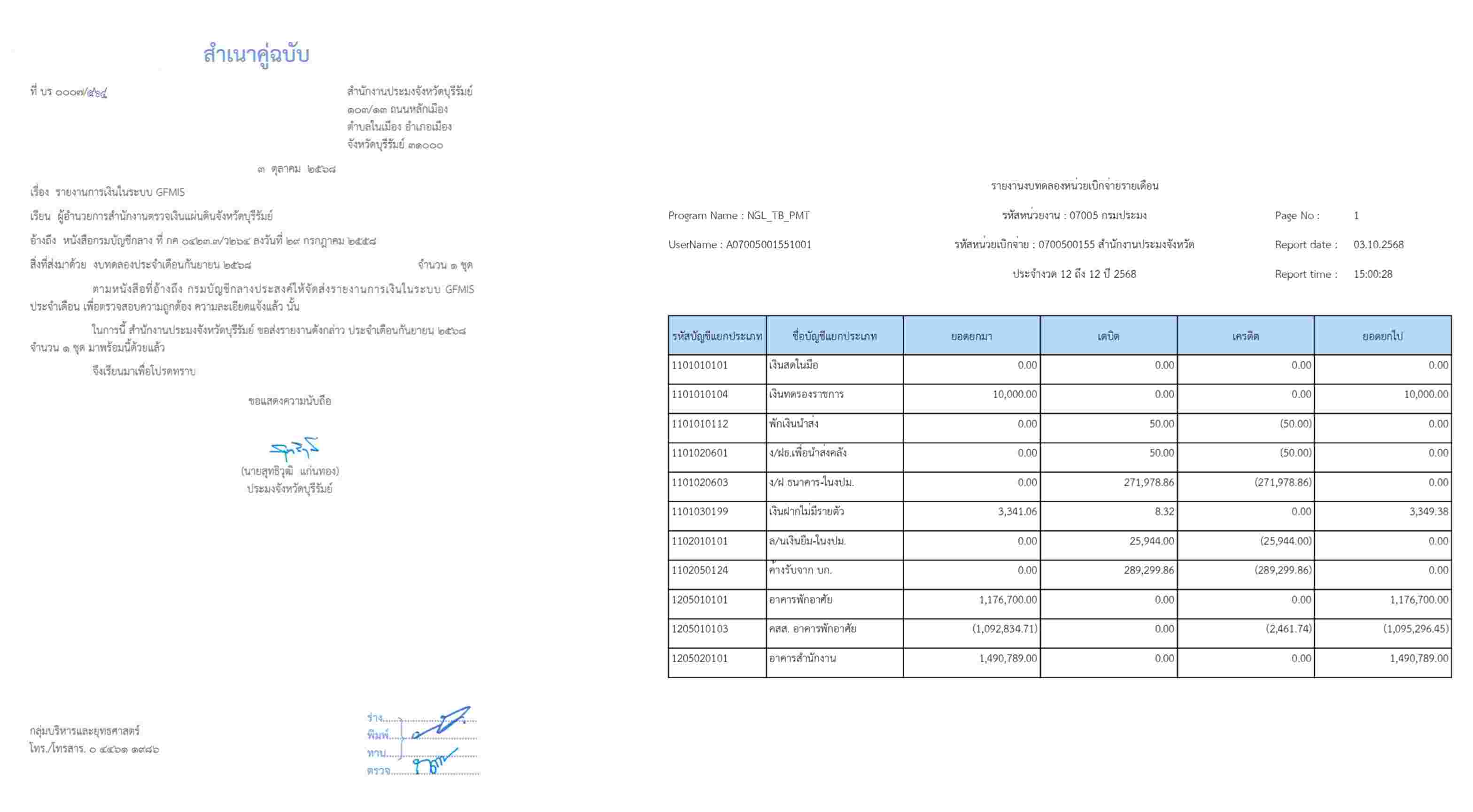 ประกาศเปิดเผยงบทดลอง ประจำเดือนกันยายน 2568