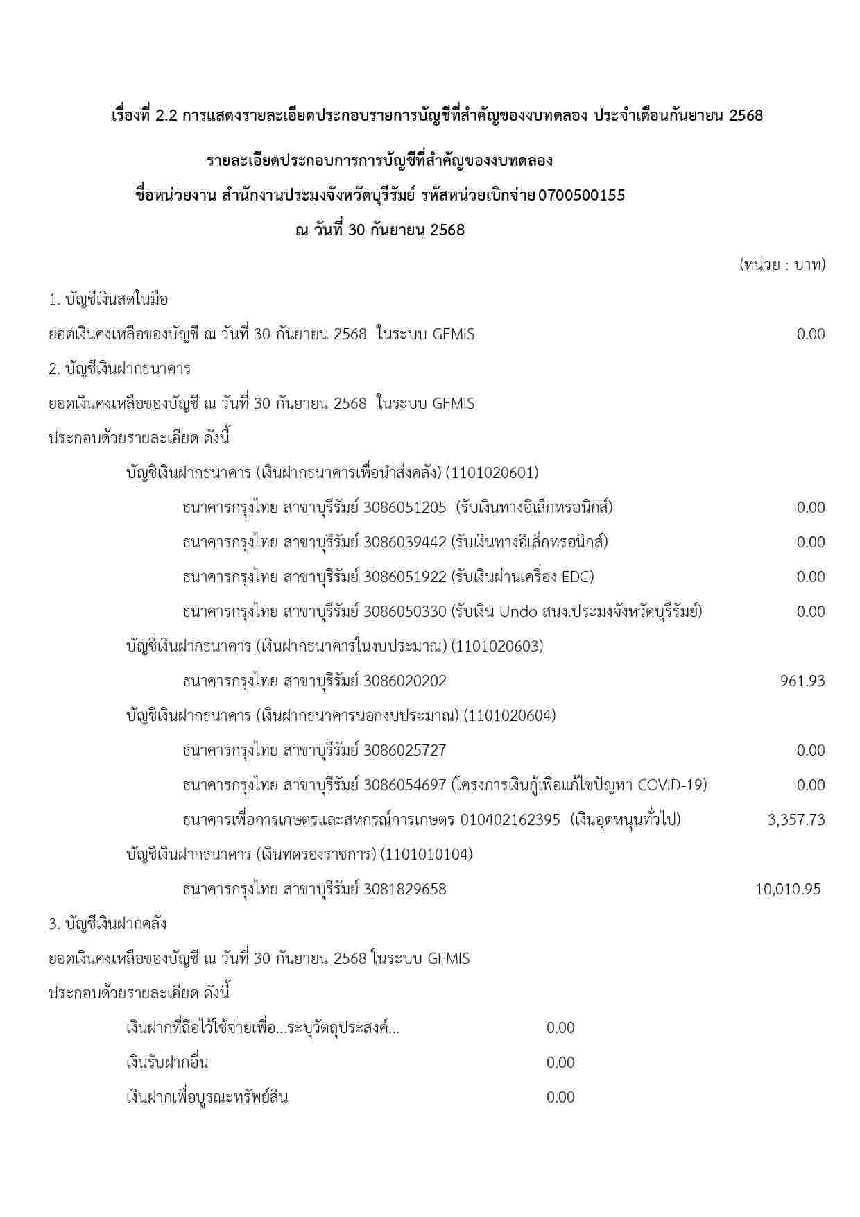 รายละเอียดประกอบการการบัญชีที่สำคัญของงบทดลอง ประจำเดือนกันยายน 2568