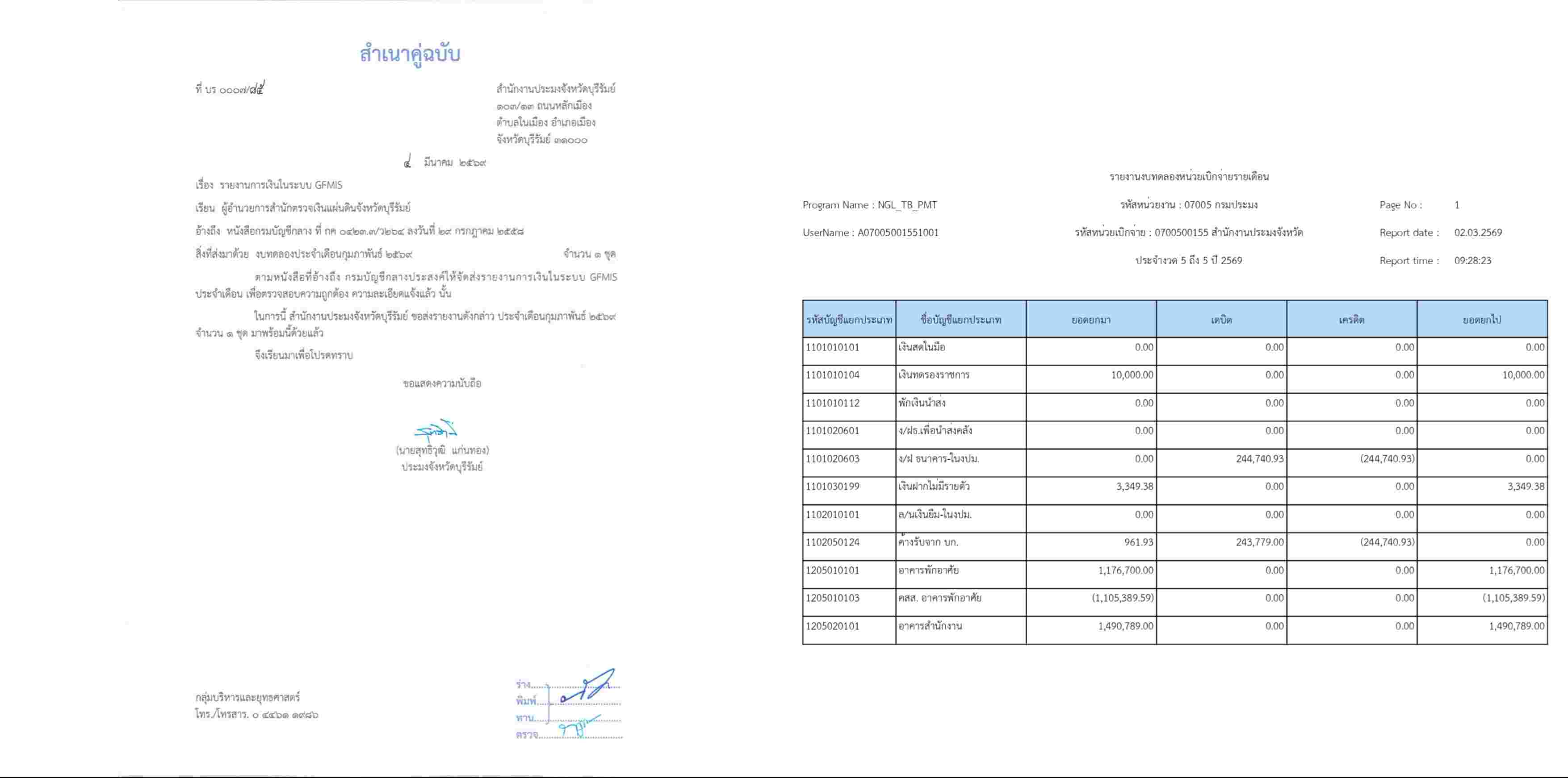 ประกาศเปิดเผยงบทดลอง ประจำเดือนกุมภาพันธ์ 2569
