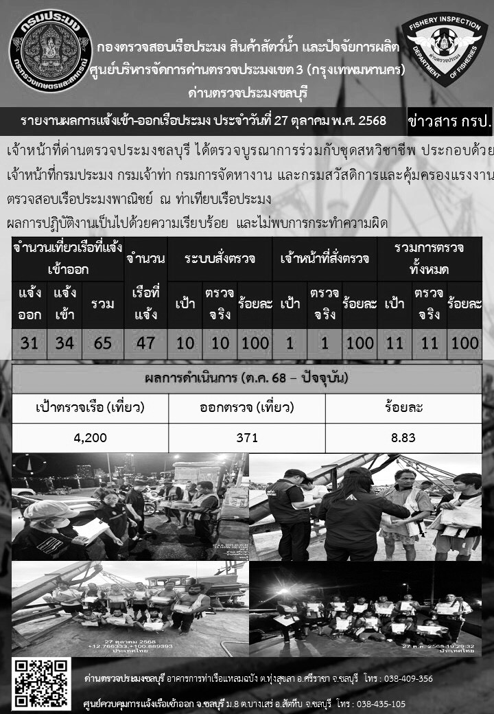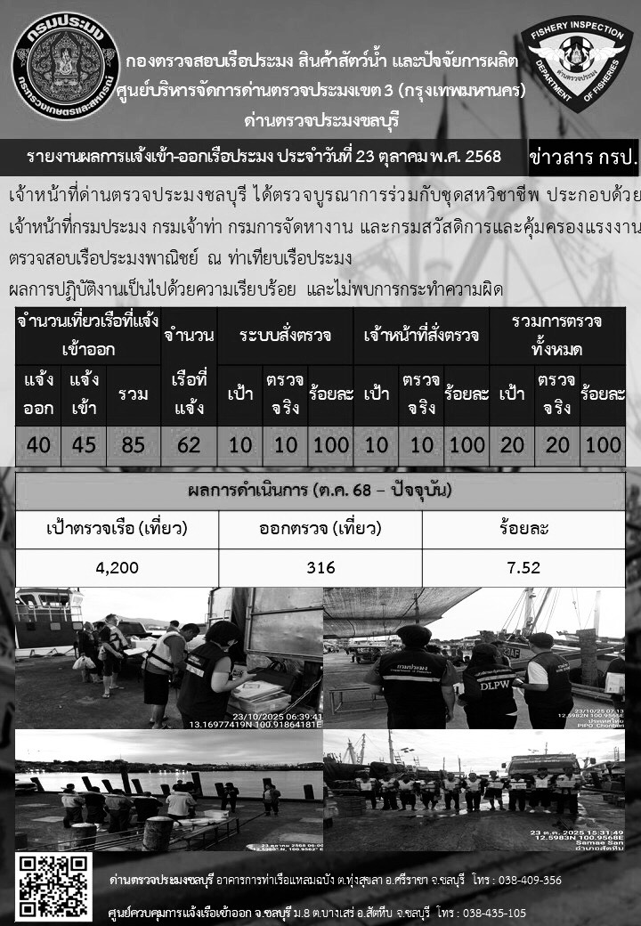 วันที่ 23-27 ต.ค. 2568 ผลการปฏิบัติงานเป็นไปด้วยความเรียบร้อย