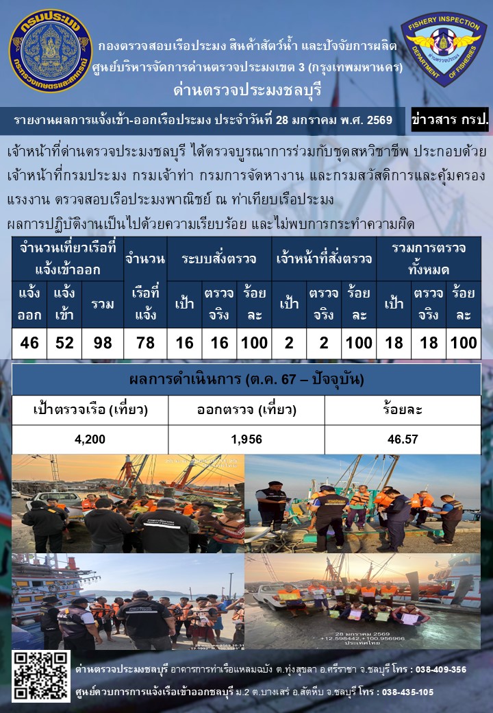 วันที่ 28-31 ม.ค. 2569 ผลการปฏิบัติงานเป็นไปด้วยความเรียบร้อย