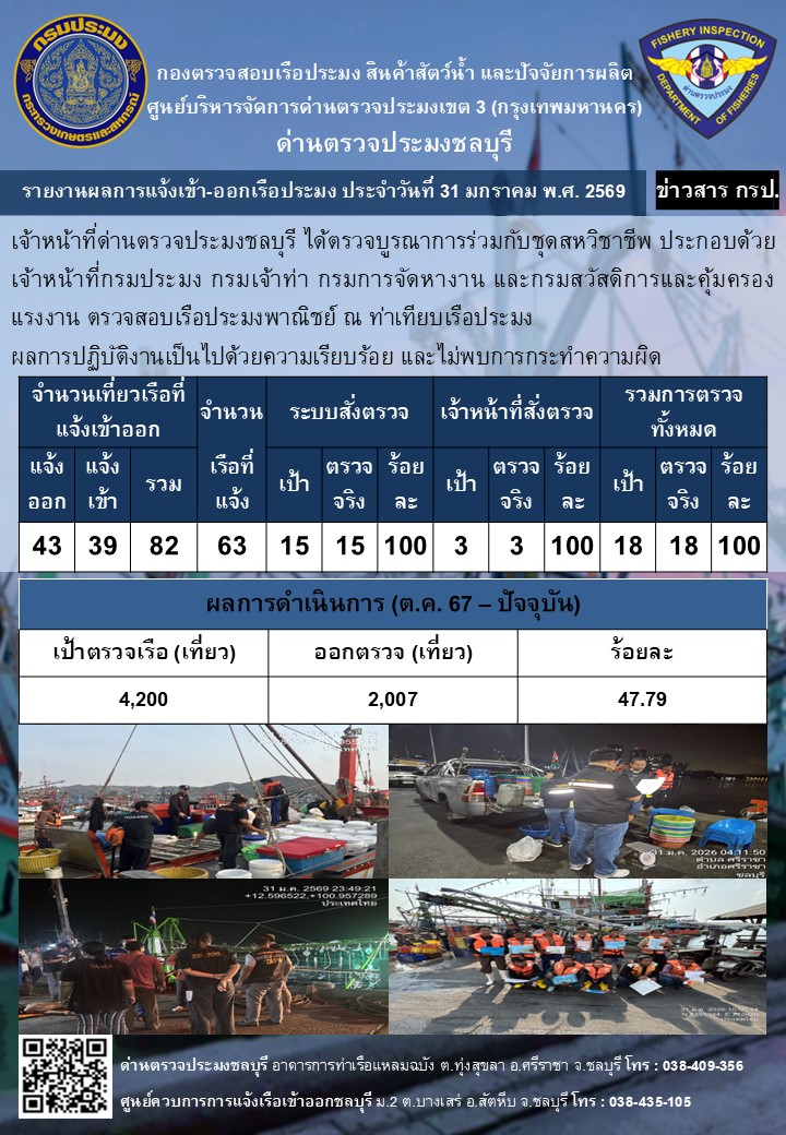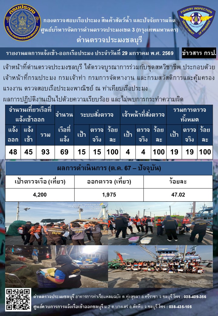 ผลการปฏิบัติงานการตรวจเรือประมง ณ ท่าเทียบเรือ