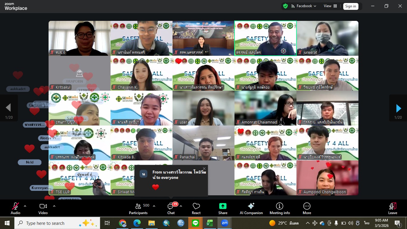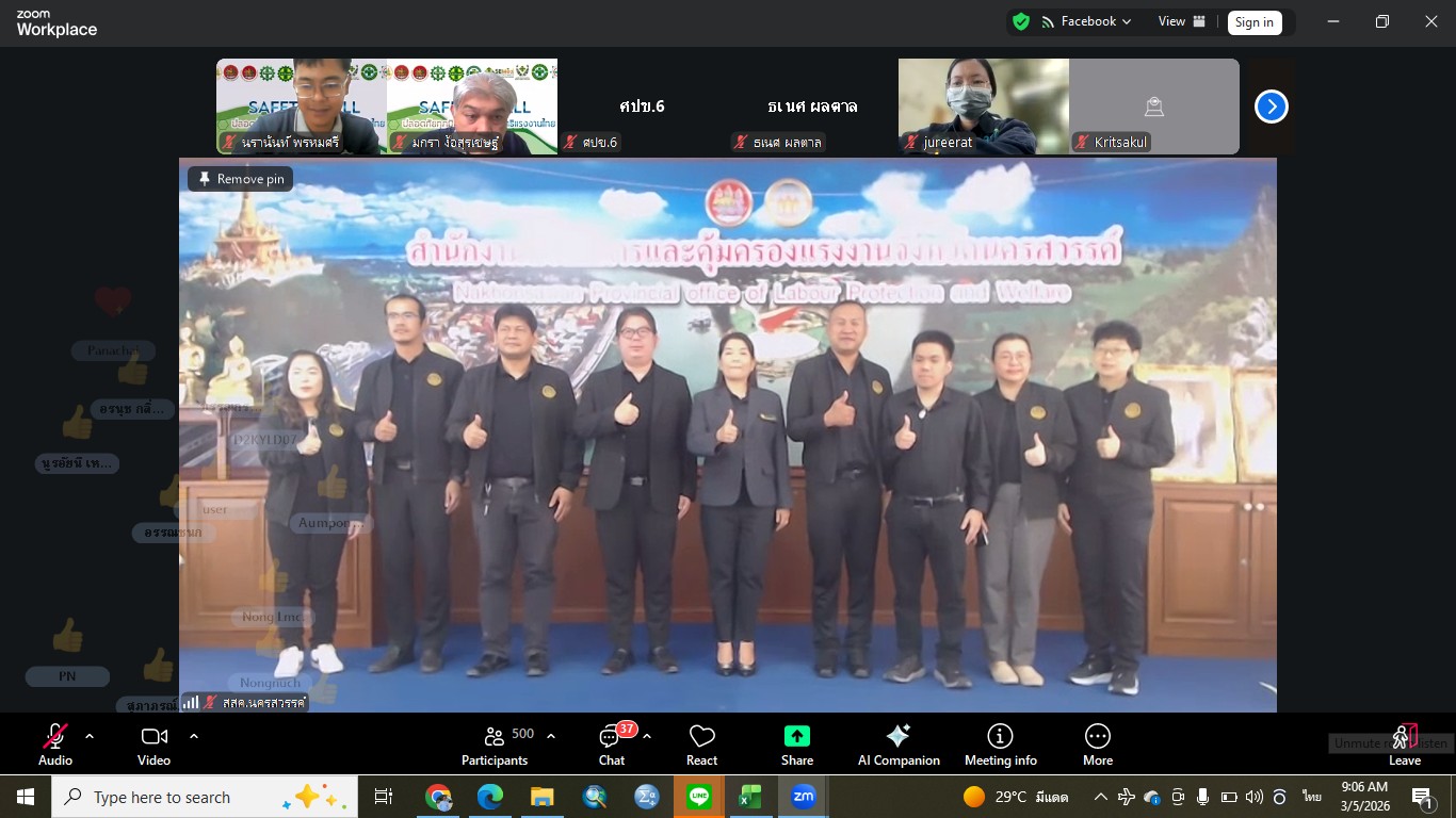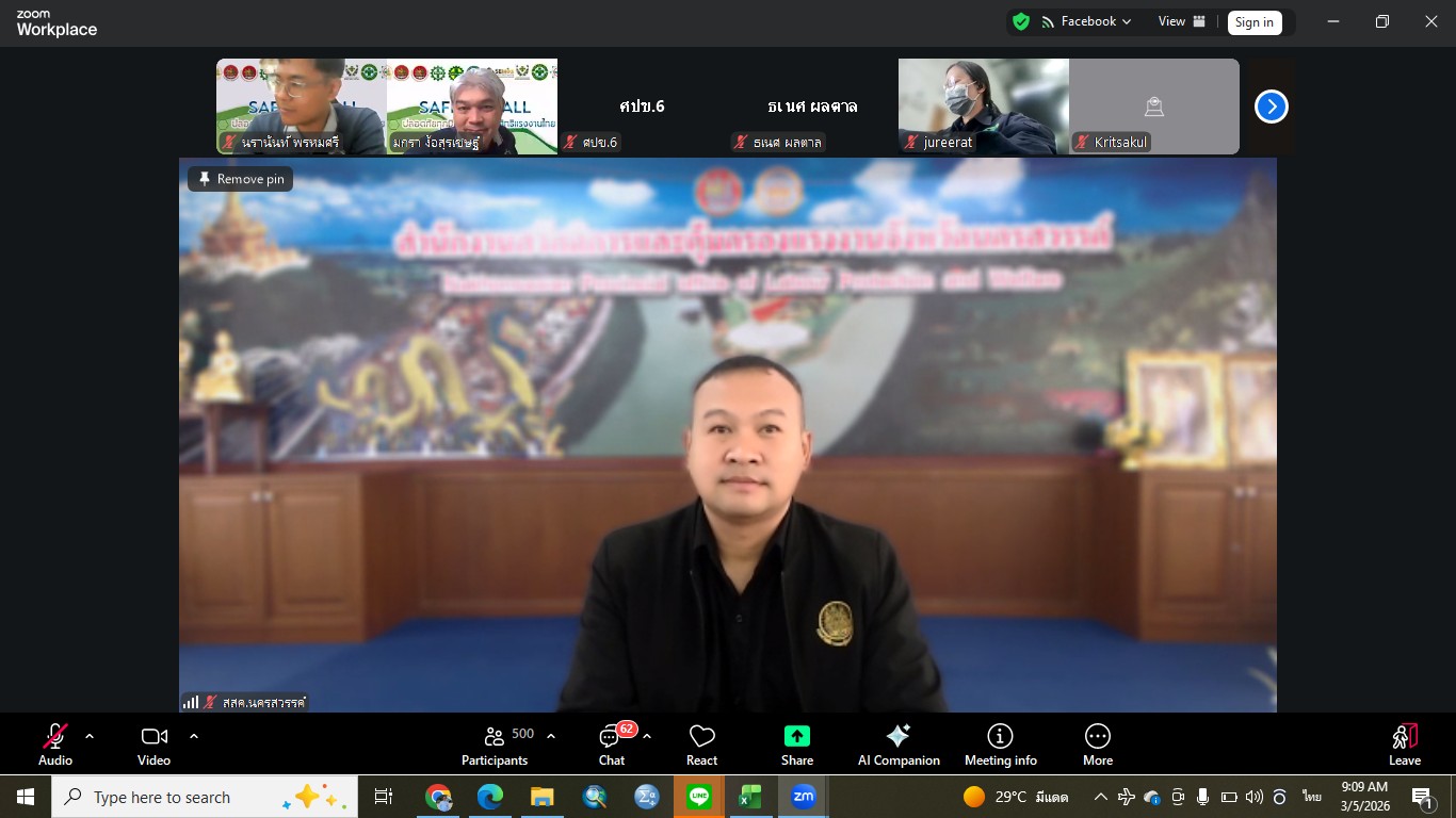 วันที่ 5 มีนาคม 2569 นายเจนณรงค์ วรรณอุบล หัวหน้าด่านตรวจประมงชลบุรี เข้าร่วมอบรมหลักสูตร การประเมินอันตรายจากสารเคมีอัตรายและพรบ.ควบคุมโรคจากการประกอบอาชีพและสิ่งแวดล้อม 2562 โดยมีนางอรอุมา กุลวานิชไชยนันท์ สวัสดิการและคุ้มครองแรงงานจังหวัดนครสวรรค์ เป็นประธานในการอบรม