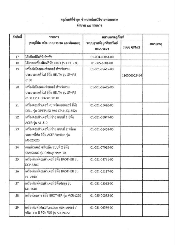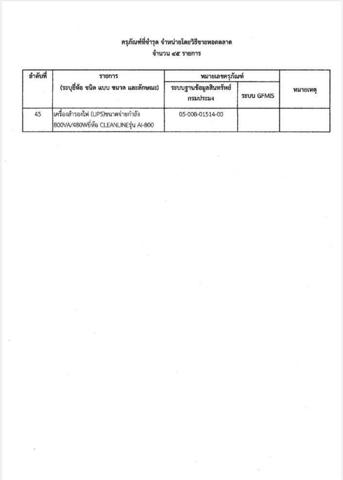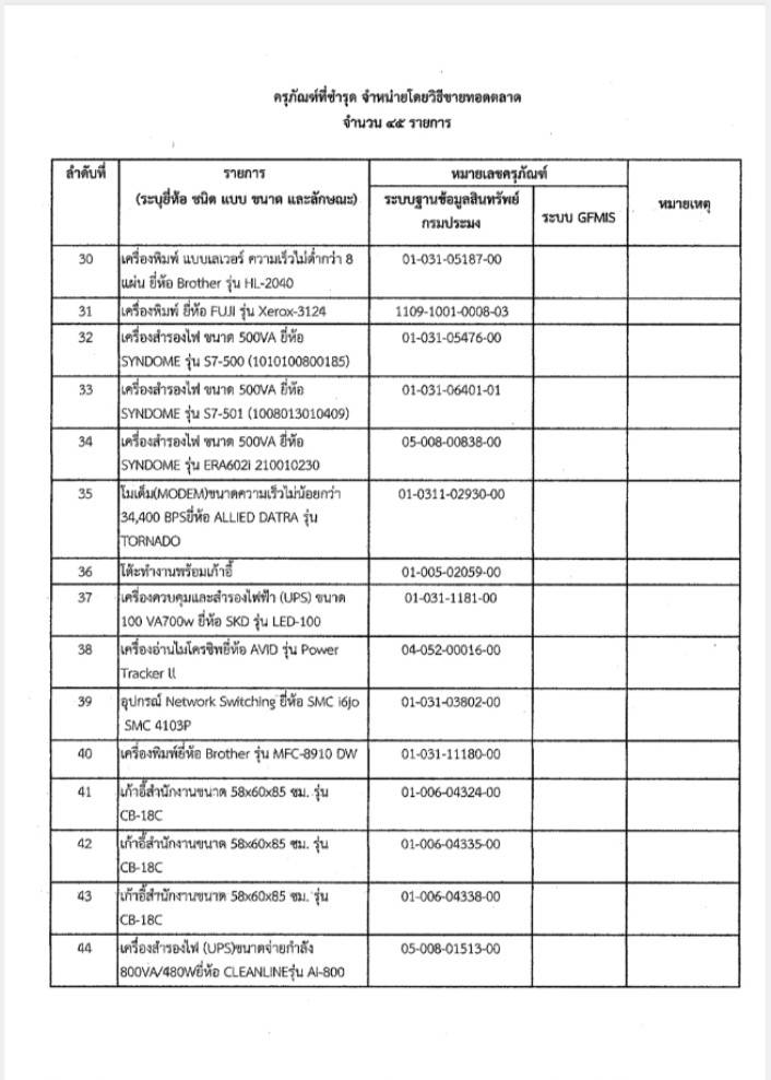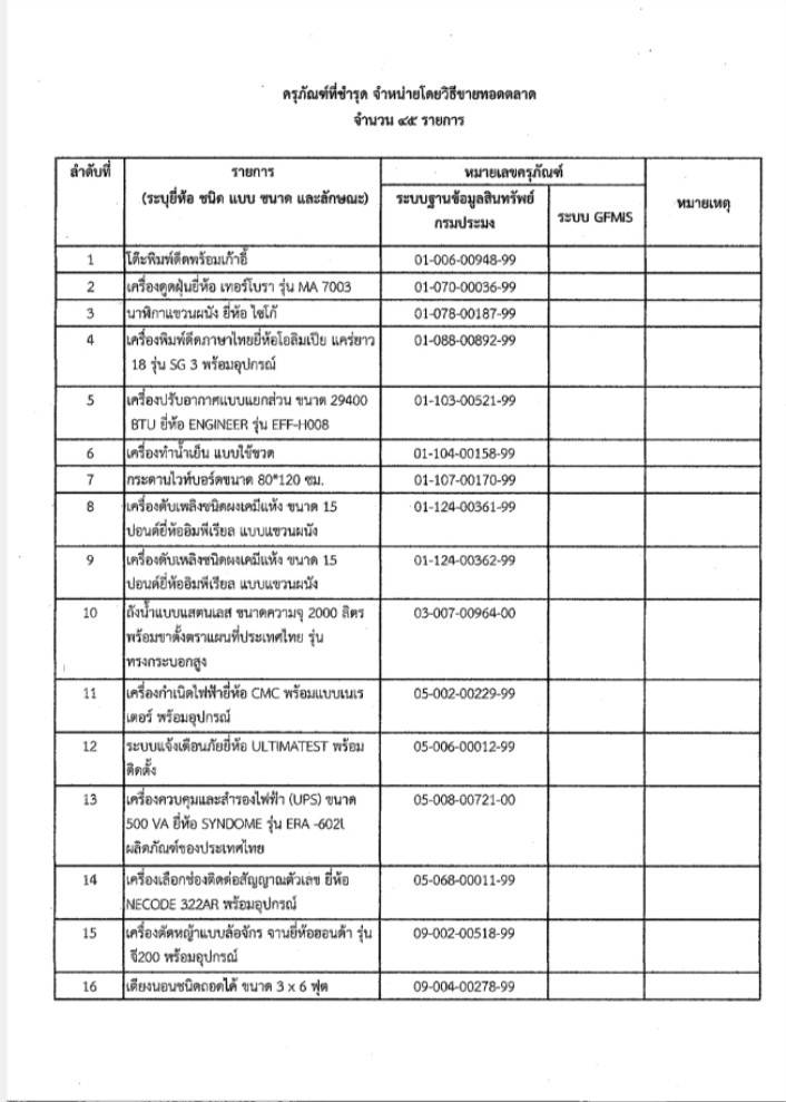 ประกาศด่านตรวจประมงชลบุรี เรื่อง จำหน่ายครุภัณฑ์ที่ชำรุดโดยวิธีขายทอดตลาด จำนวน 45 รายการ