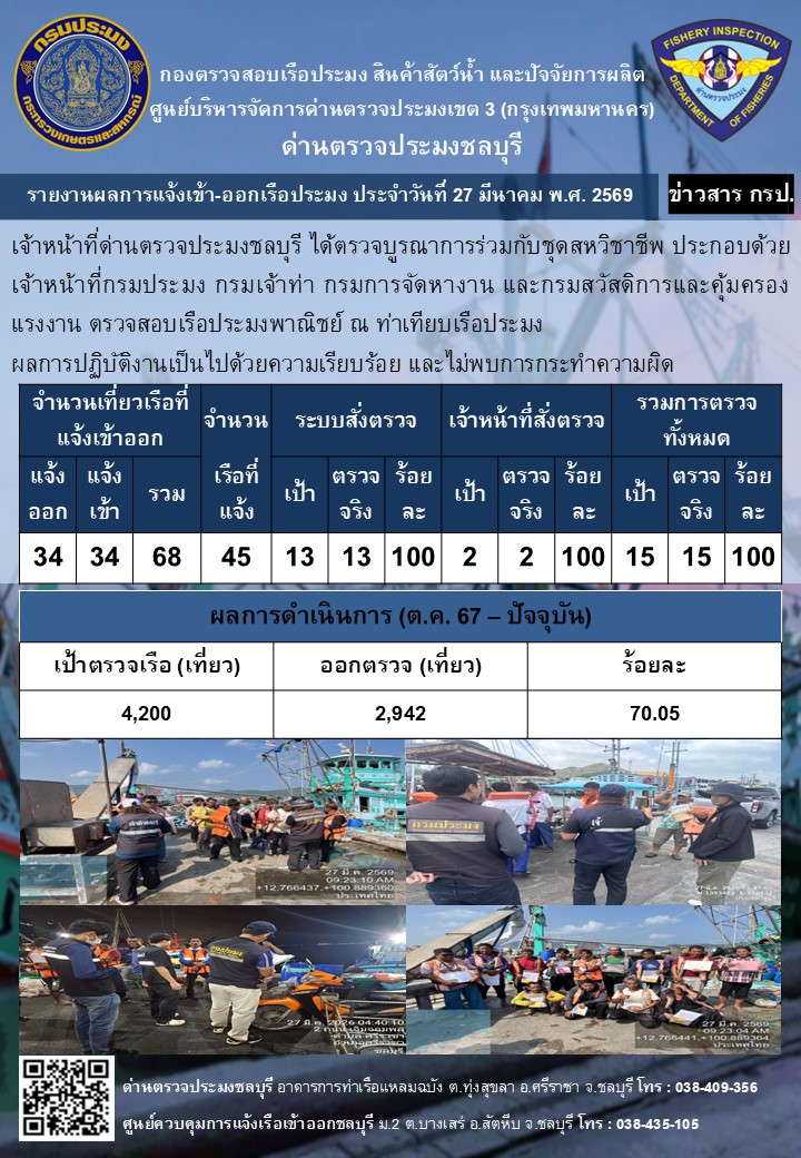 วันที่ 27-31 มี.ค. 2569 ผลการปฏิบัติงานเป็นไปด้วยความเรียบร้อย