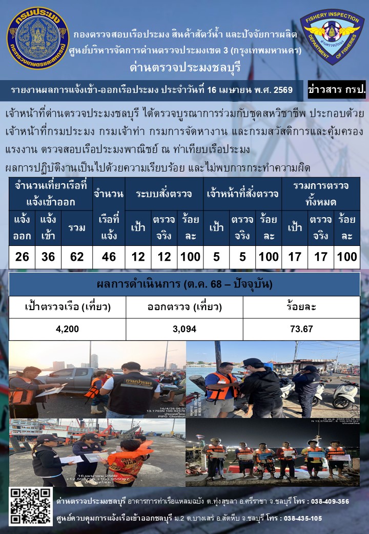 วันที่ 16-20 เม.ย. 2569 ผลการปฏิบัติงานเป็นไปด้วยความเรียบร้อย