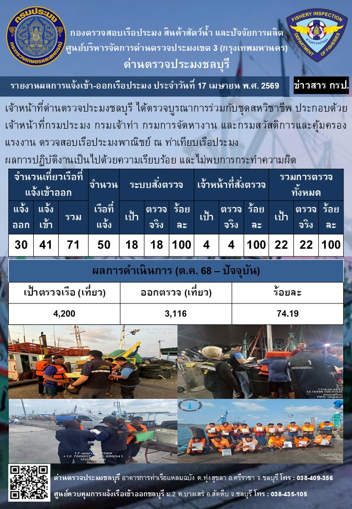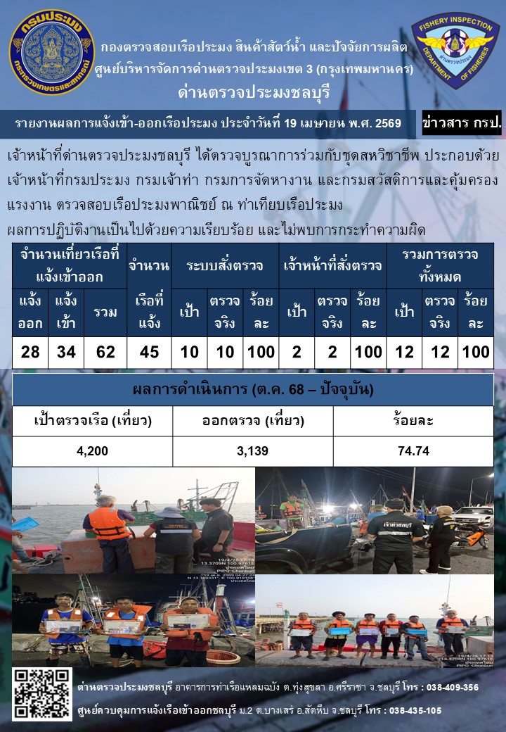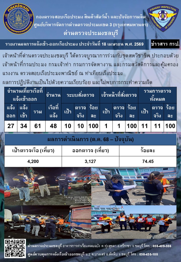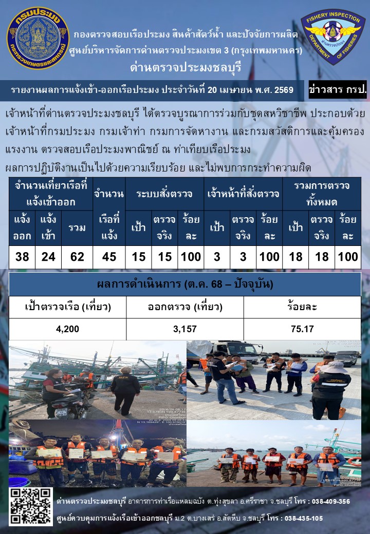 ผลการปฏิบัติงานการตรวจเรือประมง ณ ท่าเทียบเรือ