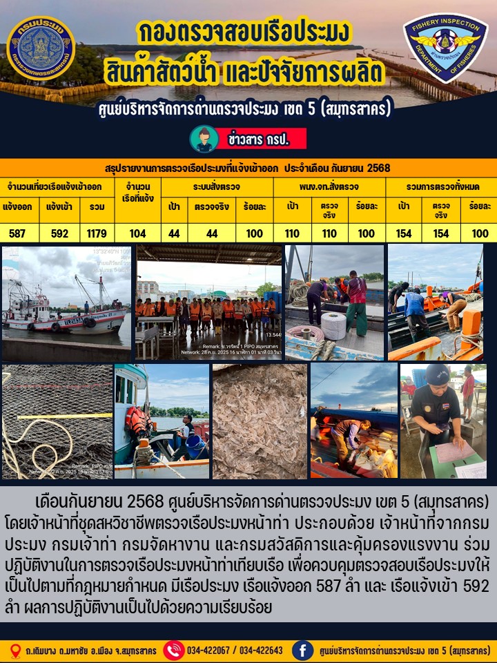 รายงานการตรวจเรือประมงที่แจ้งเข้าออกประจำเดือน กันยายน 2658