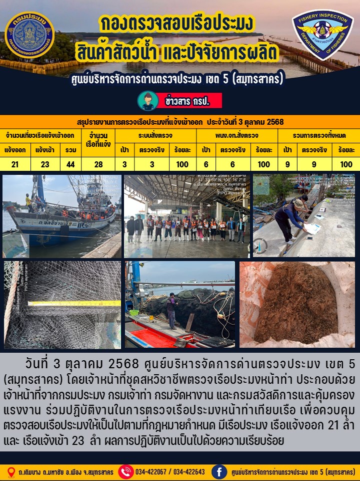 รายงานการตรวจเรือประมงที่แจ้งเข้าออกประจำวันที่ 3 ตุลาคม 2568