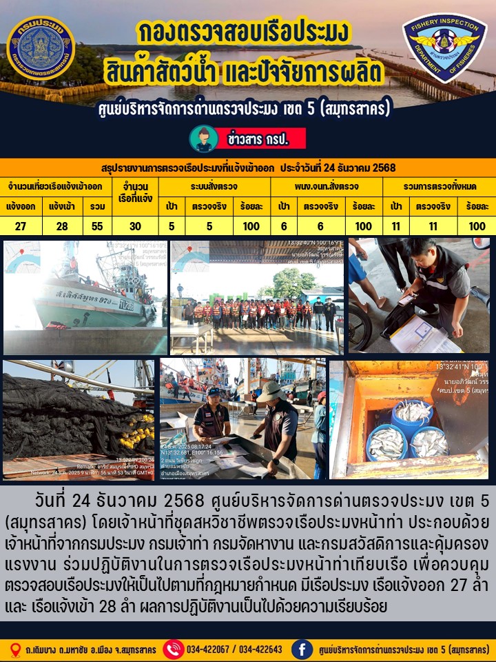 รายงานการตรวจเรือประมงที่แจ้งเข้าออกประจำวันที่ 24 ธันวาคม 2568