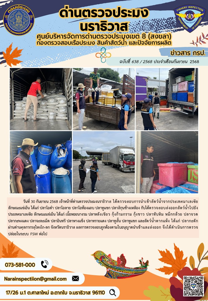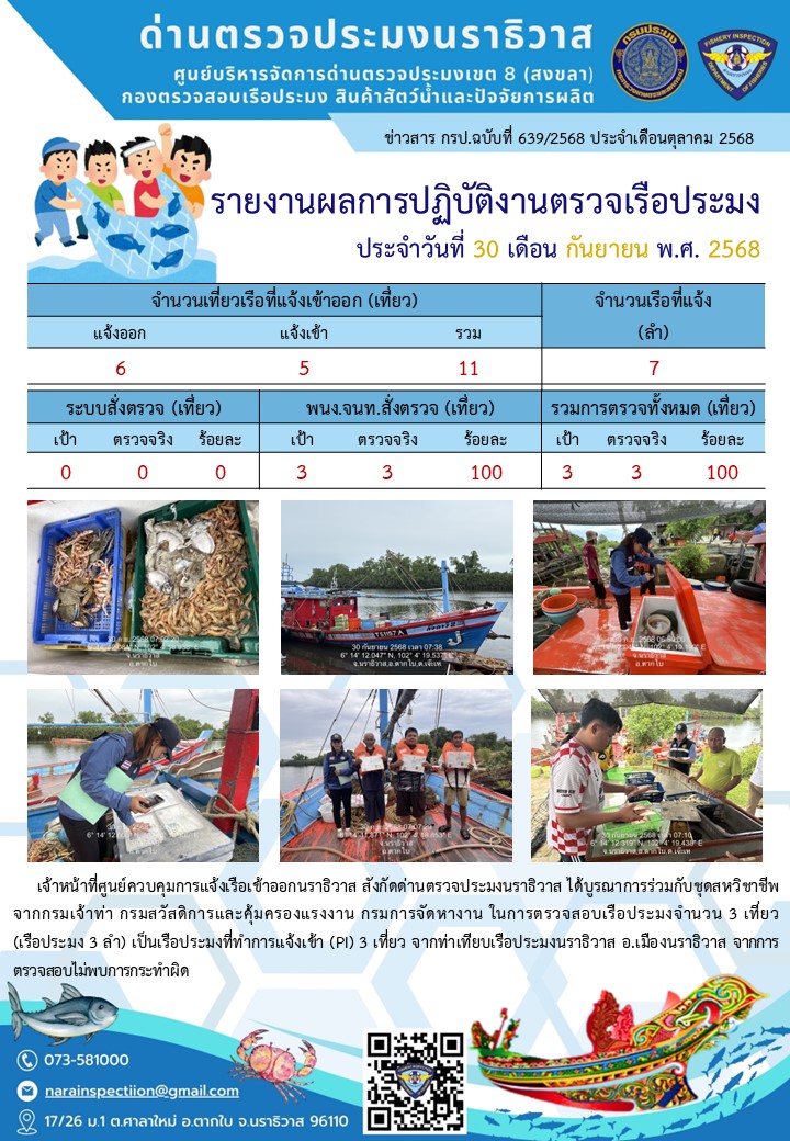 ประชาสัมพันธ์ด่านตรวจประมงนราธิวาส ประจำวันที่ 30 กันยายน 2568