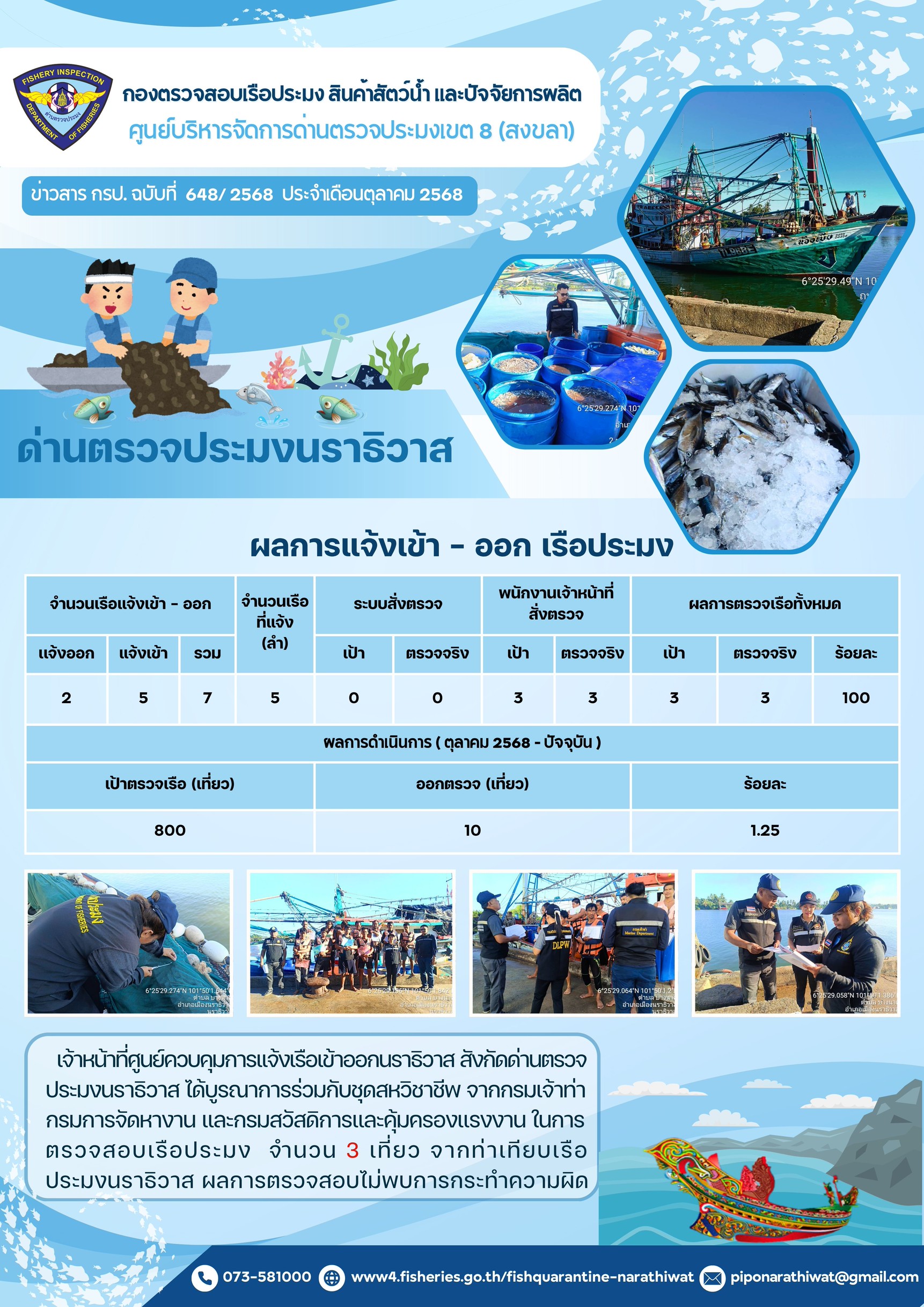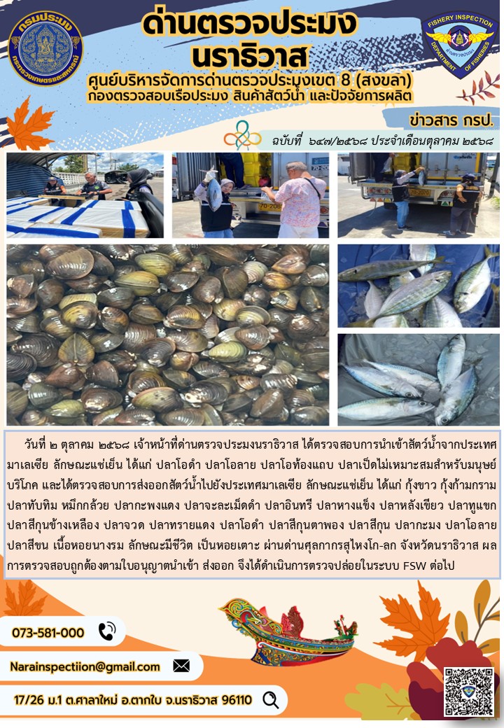 ประชาสัมพันธ์ด่านตรวจประมงนราธิวาส ประจำวันที่ 2 ตุลาคม 2568