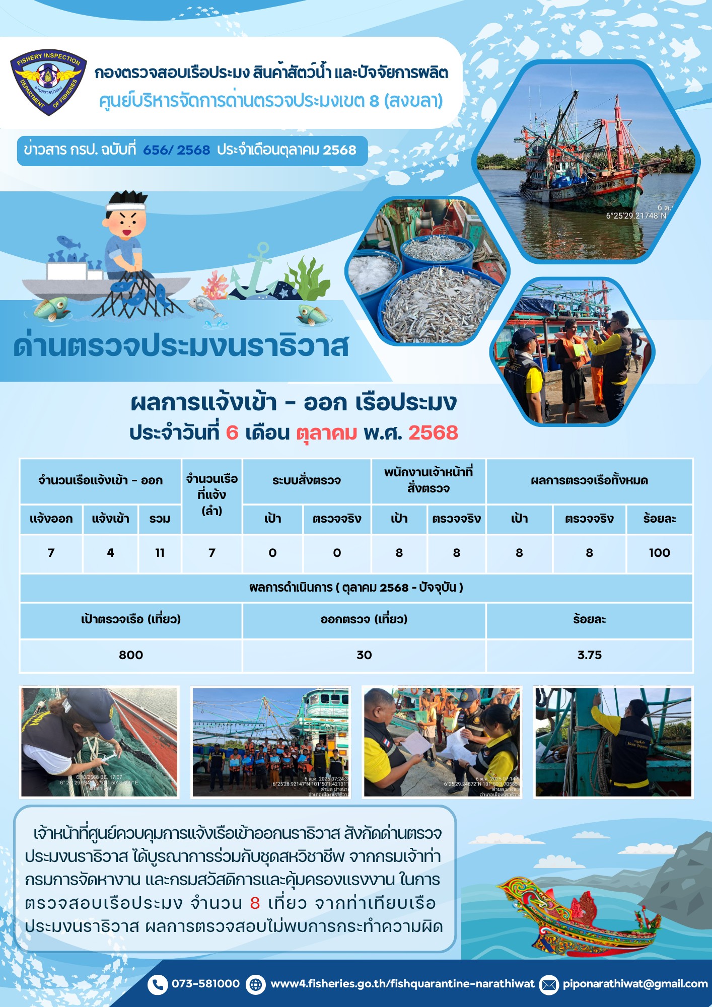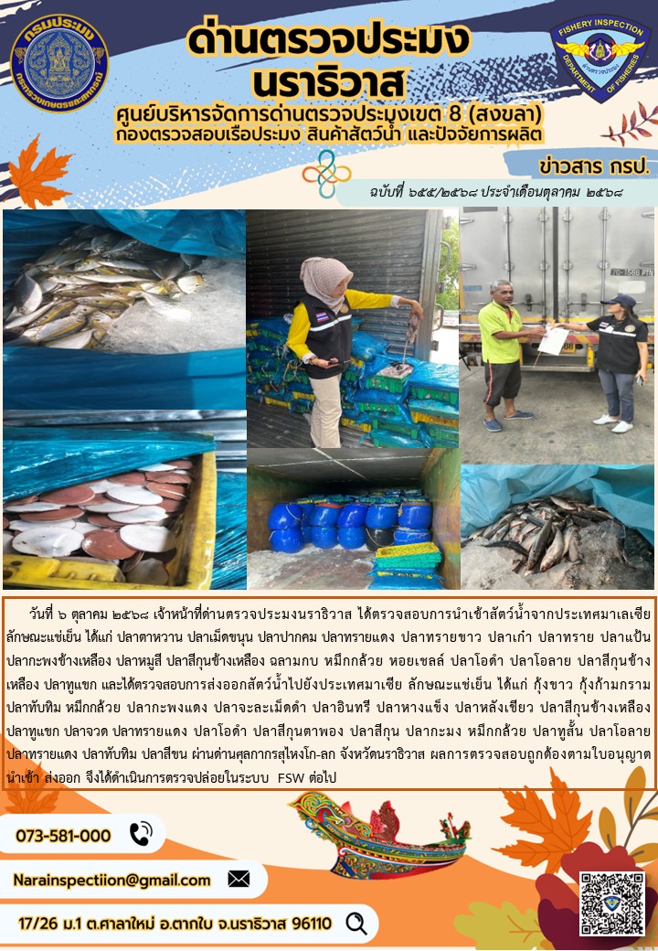ประชาสัมพันธ์ด่านตรวจประมงนราธิวาส ประจำวันที่ 6 ตุลาคม 2568