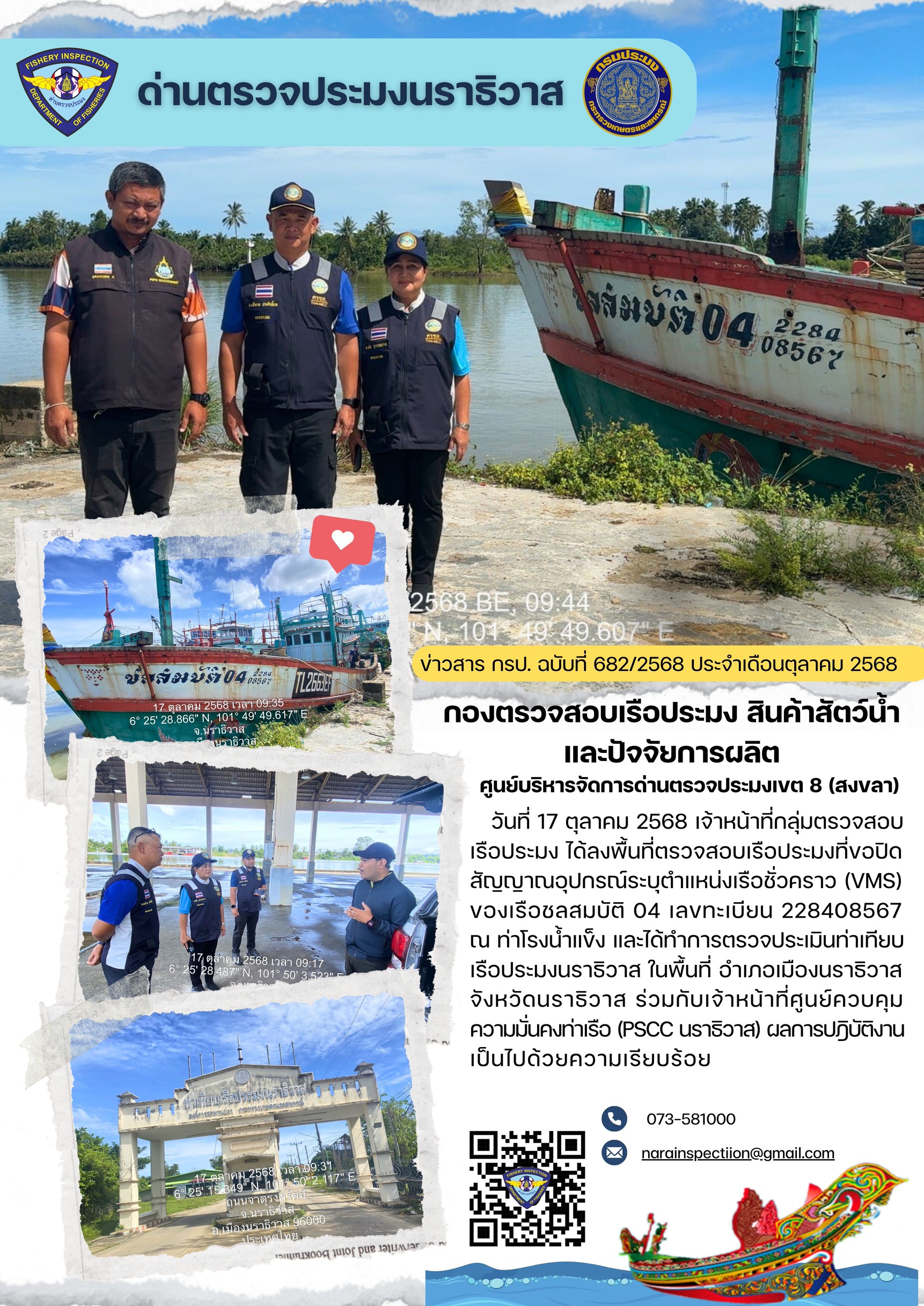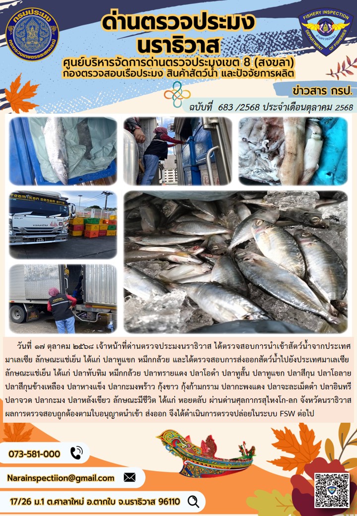 ประชาสัมพันธ์ด่านตรวจประมงนราธิวาส ประจำวันที่ 17 ตุลาคม 2568
