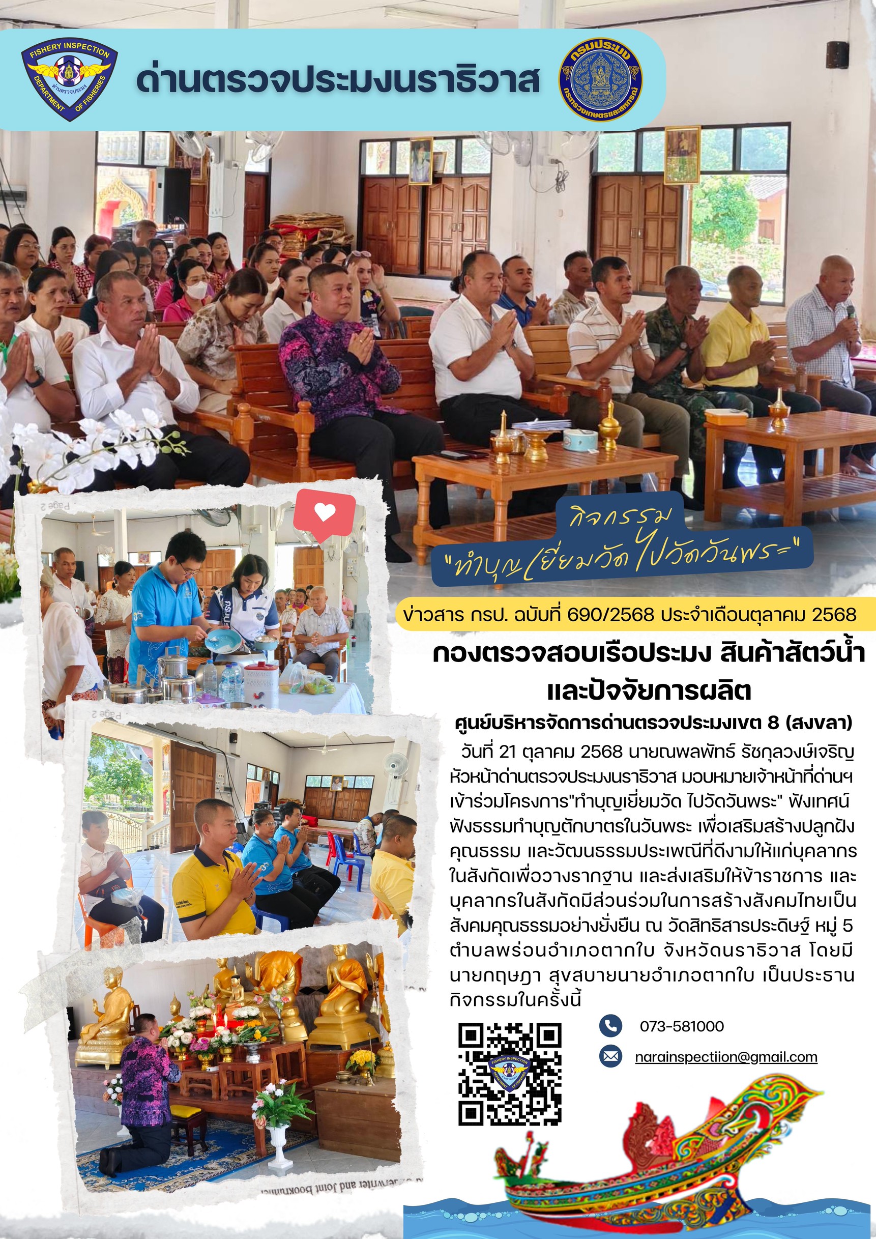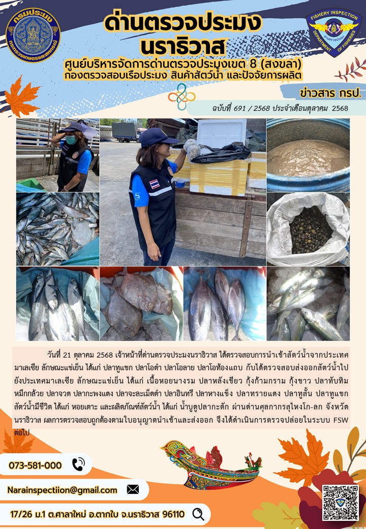 ประชาสัมพันธ์ด่านตรวจประมงนราธิวาส ประจำวันที่ 21 ตุลาคม 2568
