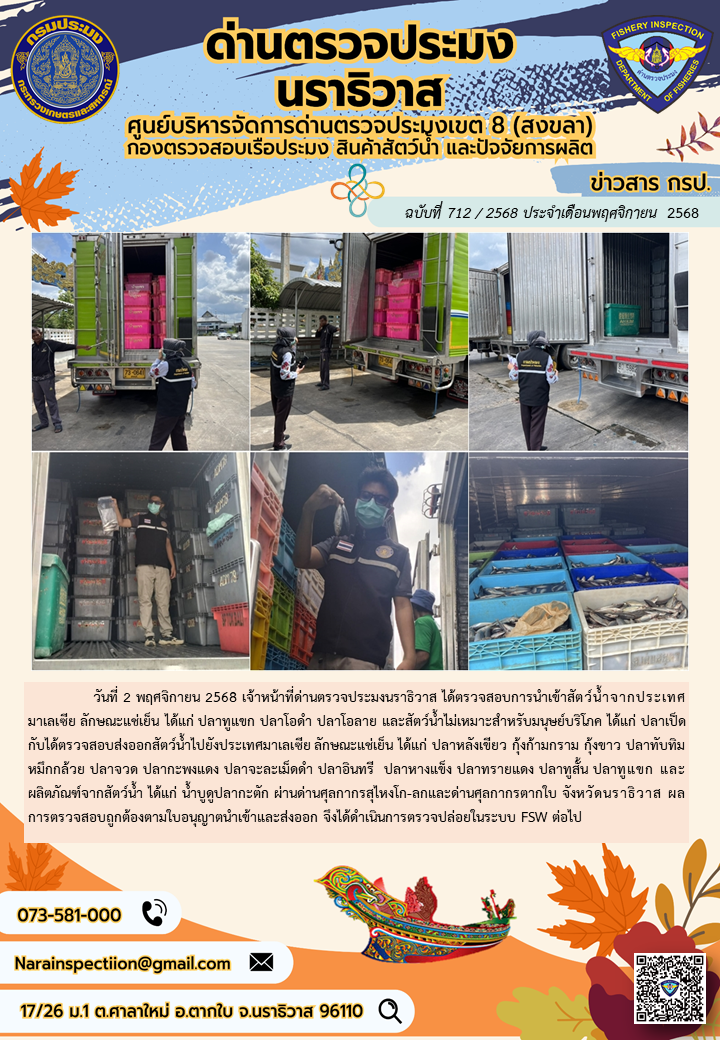 ประชาสัมพันธ์ด่านตรวจประมงนราธิวาส ประจำวันที่ 2 พฤศจิกายน 2568